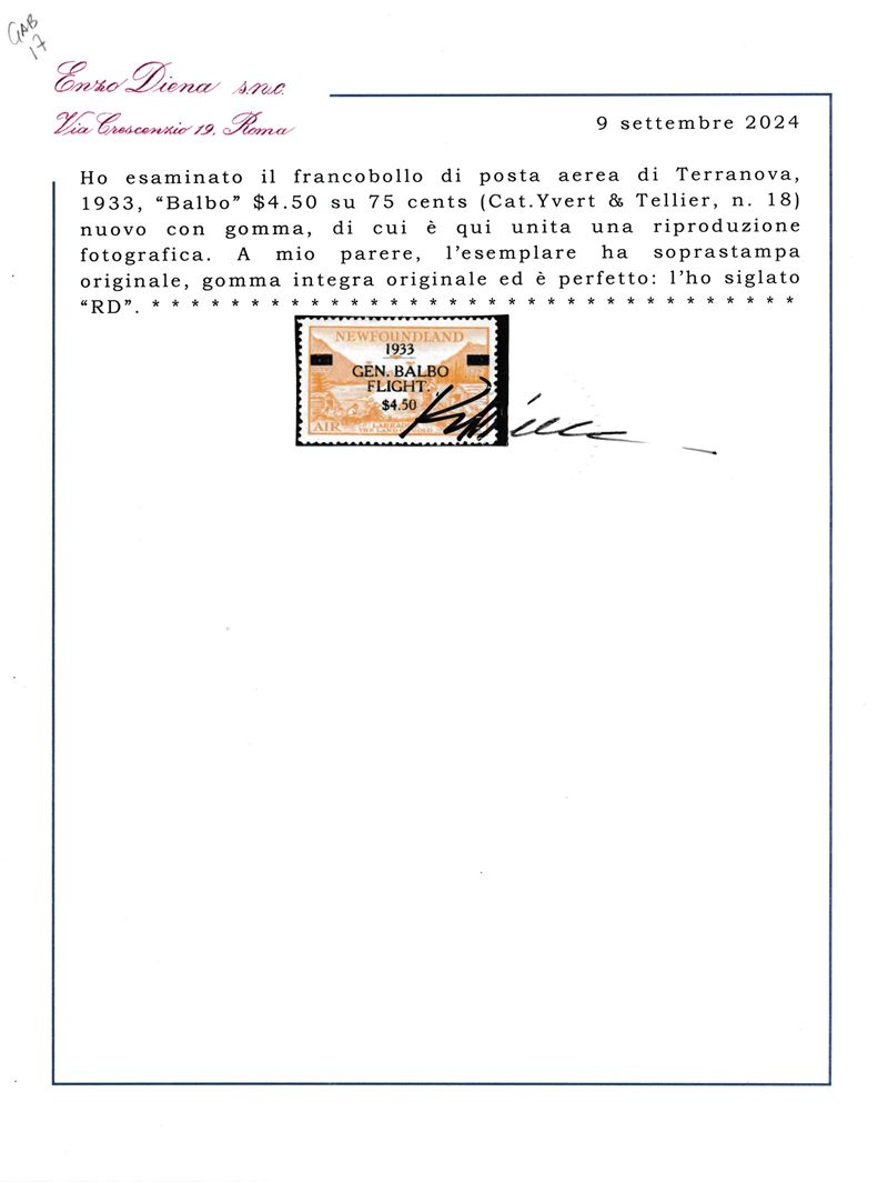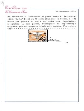 1933 – Terranova – Posta Aerea – Crociera aerea del Generale Balbo – 4,50$ su 75 cent. (Yvert 18).