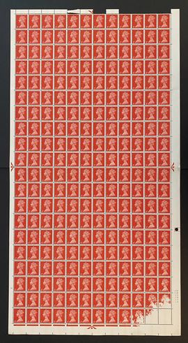 1967-69 – Gran Bretagna - Foglio intero di 240 francobolli, 1967-1969, 4 penny rosso (Unif. 476), con difetto di stampa [..]