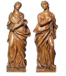 Arte barocca lombarda o veneta, XVII-XVIII secolo Coppia di figure allegoriche