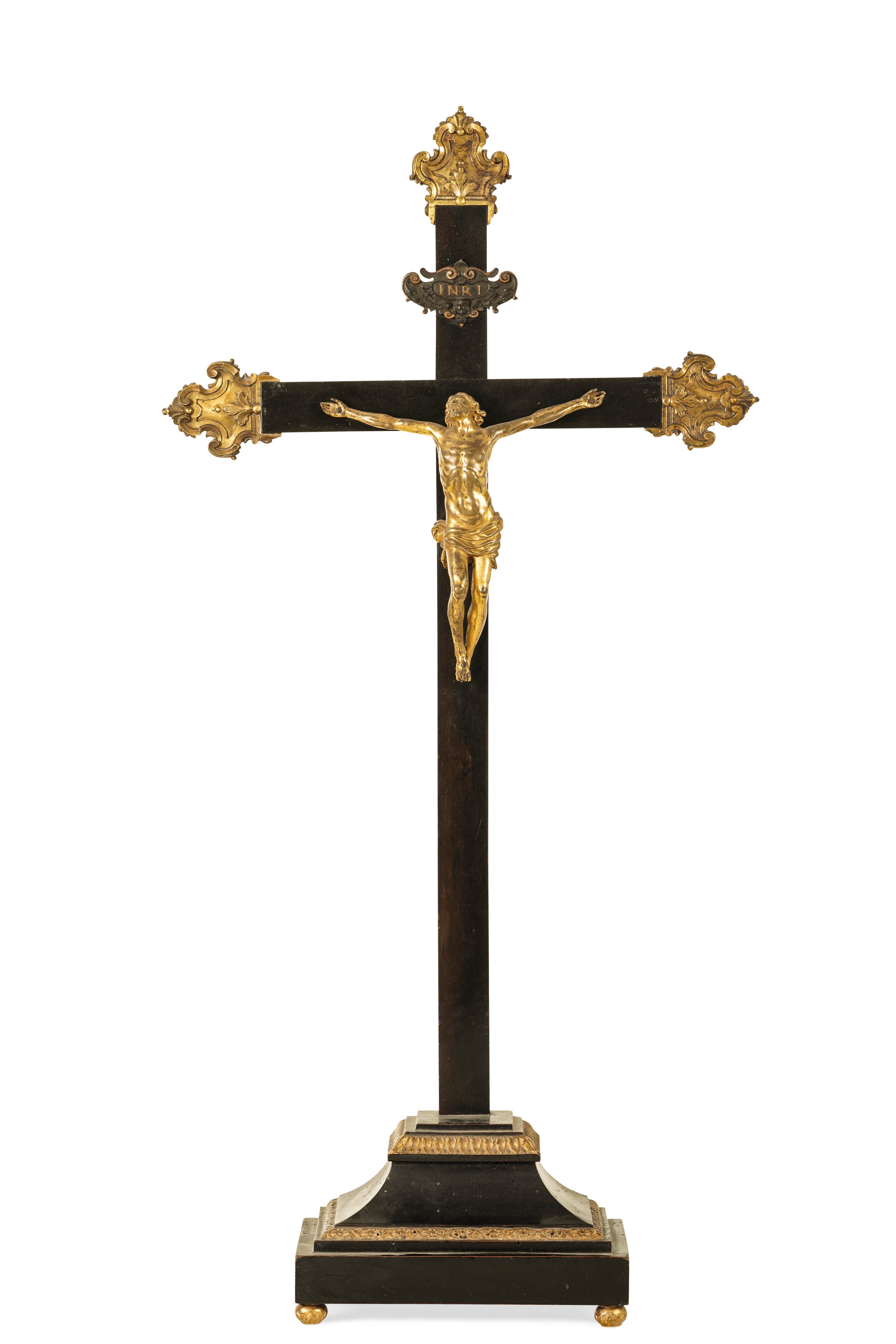 Fonditore barocco del XVII-XVIII secolo Croce da meditazione con Cristo vivo