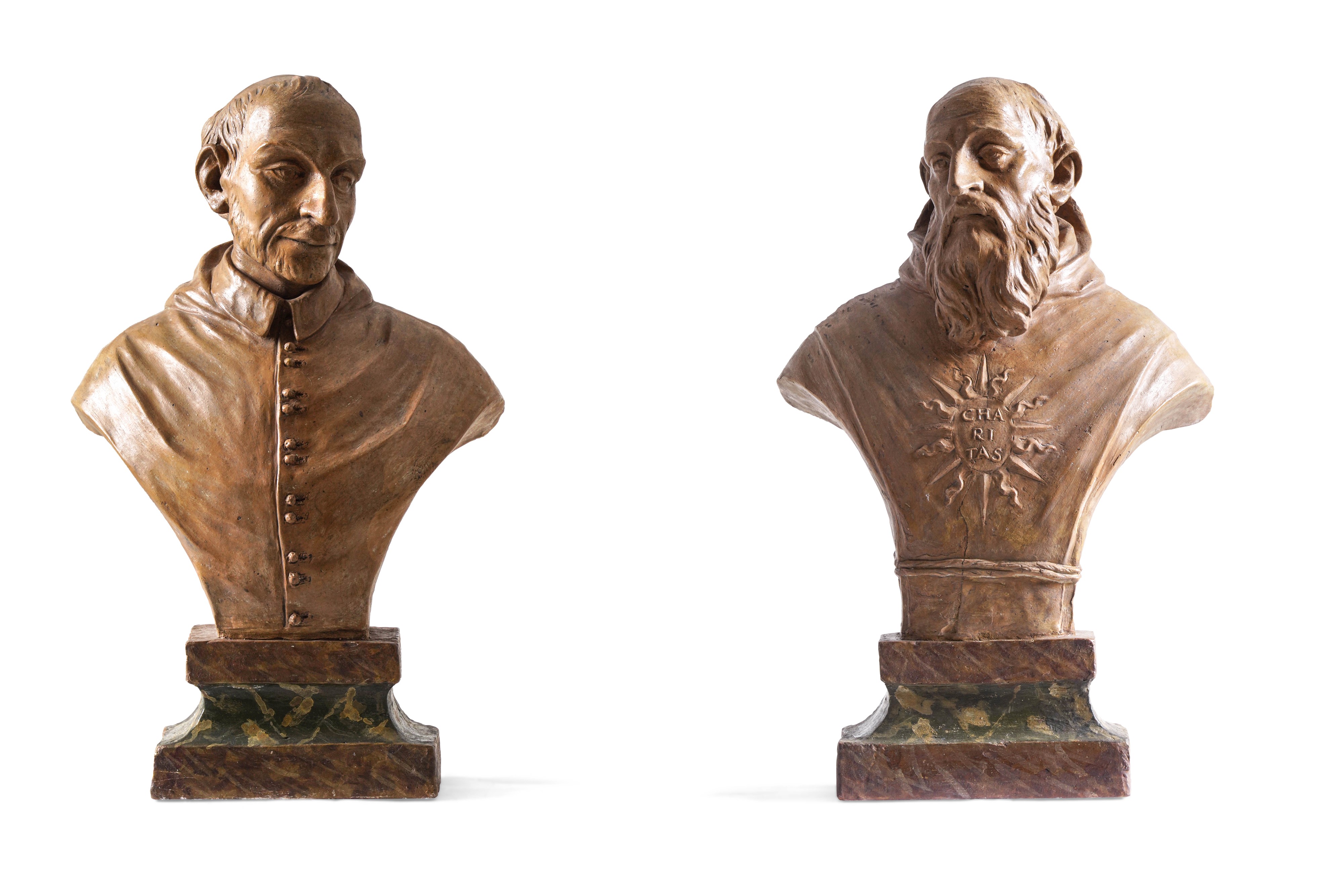 Plasticatore barocco bolognese, XVII-XVIII secolo Coppia di busti raffiguranti San Carlo Borromeo e San Francesco da Paola