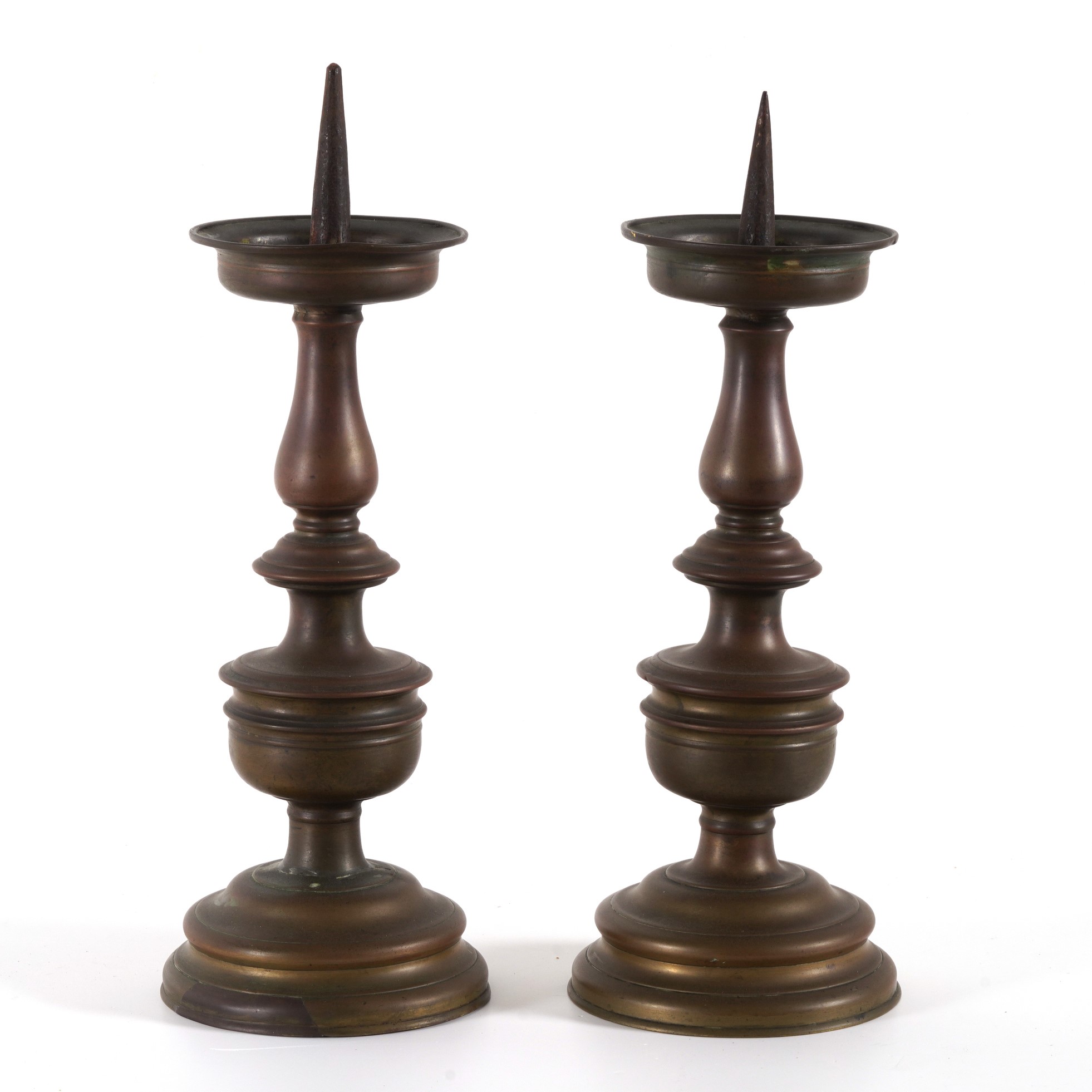 Coppia di portaceri a rocchetto in bronzo fuso. XVIII-XIX secolo