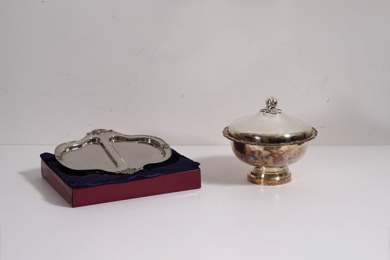 Lotto di oggetti in metallo argentato e argento