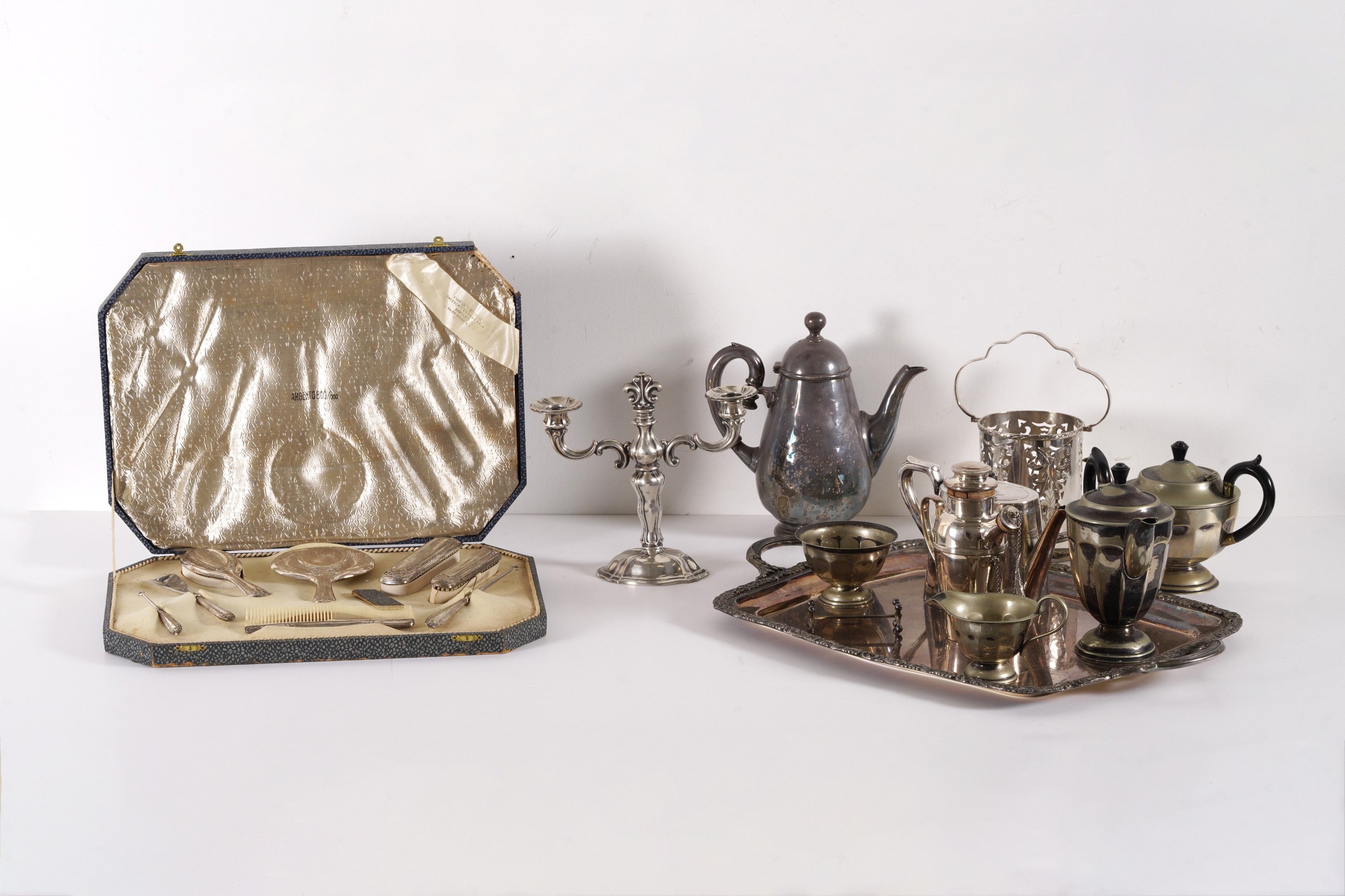 set da toilette e candelabro in argento