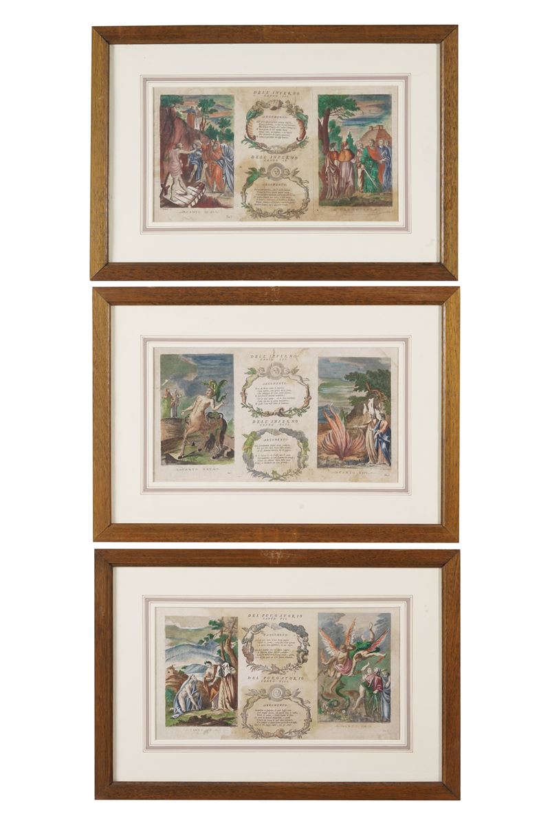 Tre stampe con episodi dalle Divina Commedia. XVIII-XIX secolo