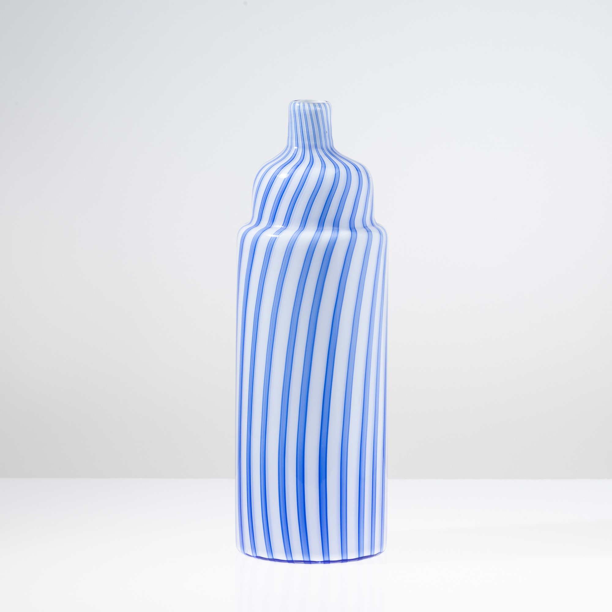 Berito series cylindrical vase in lattimo glass with vertical bands decoration.