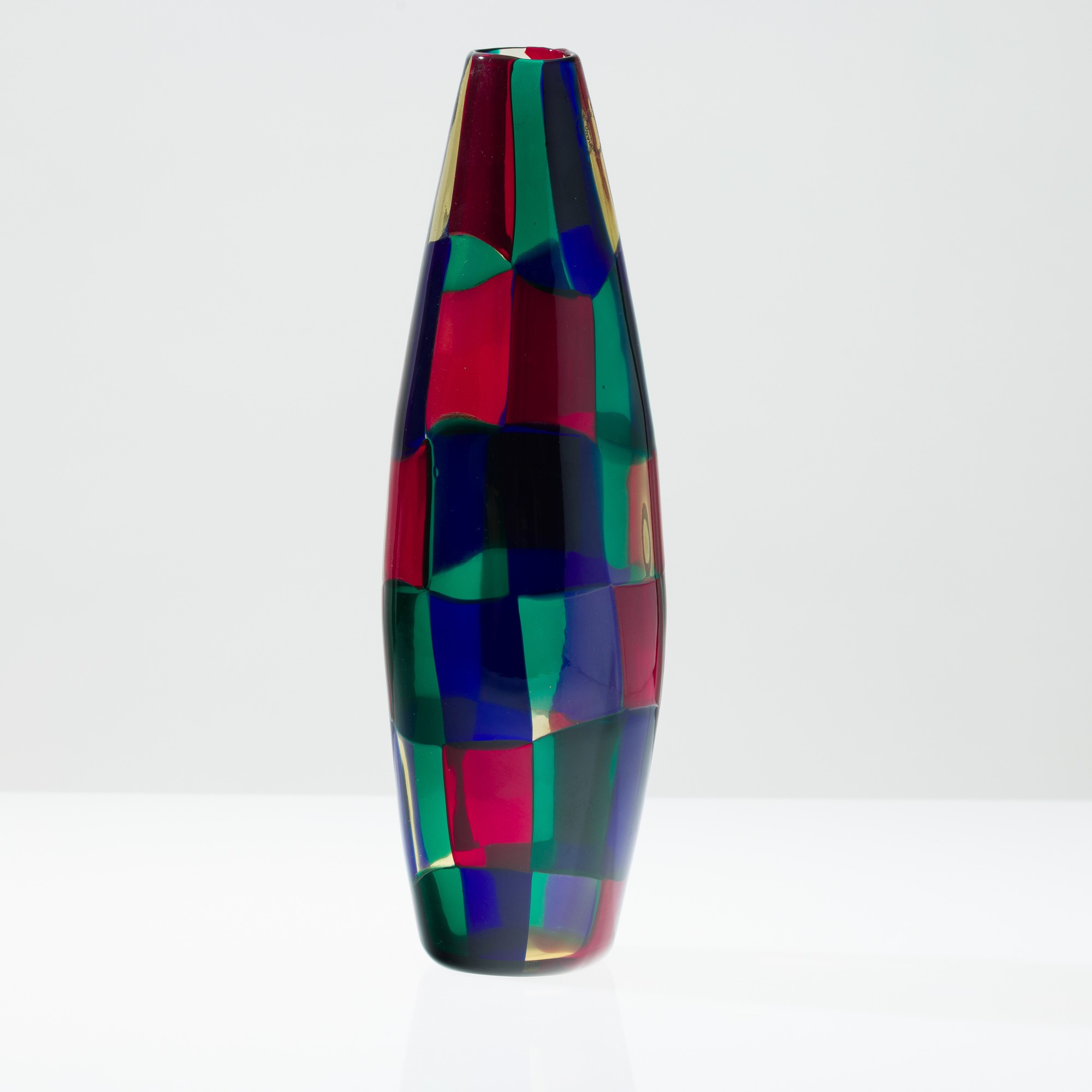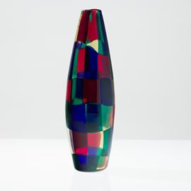 Cigar-shaped vase from the Pezzati series in blown glass with multicolour tesserae decoration in the Parigi variant.