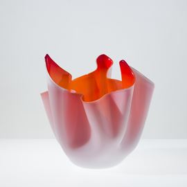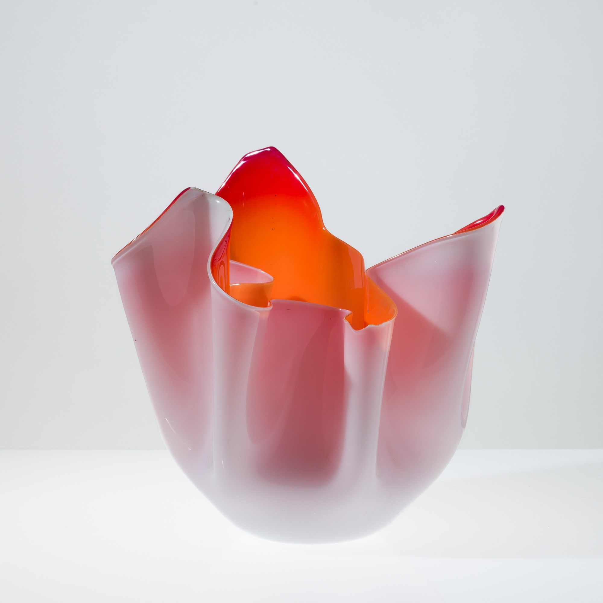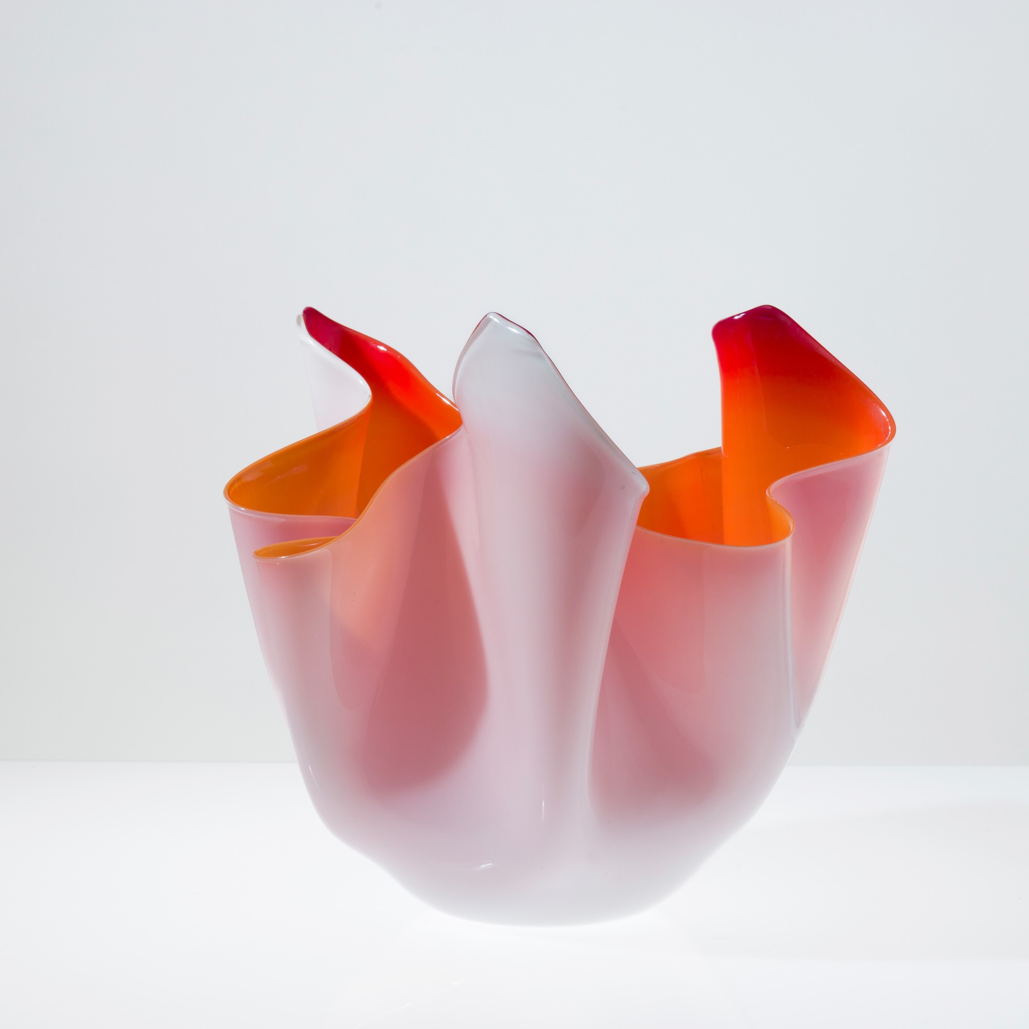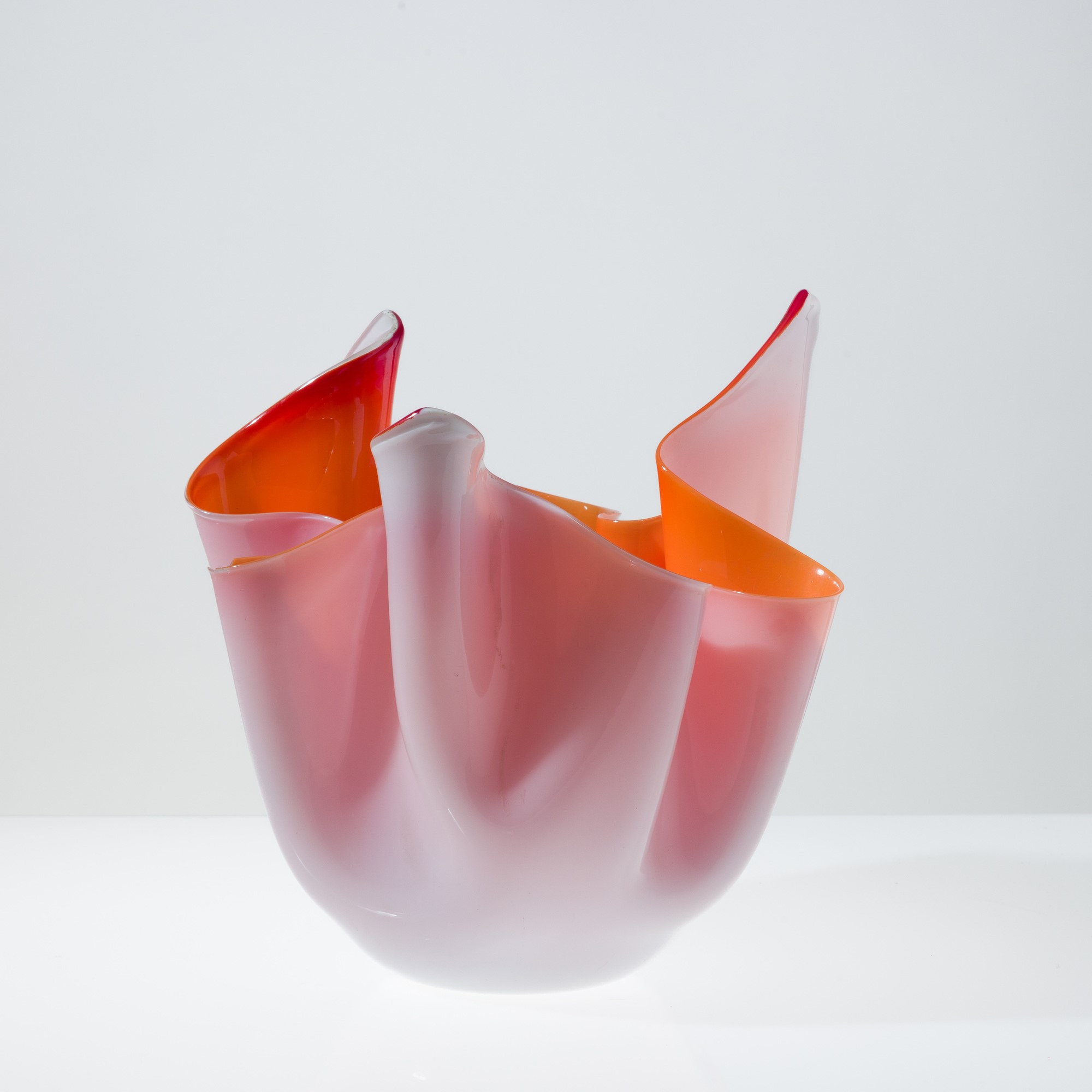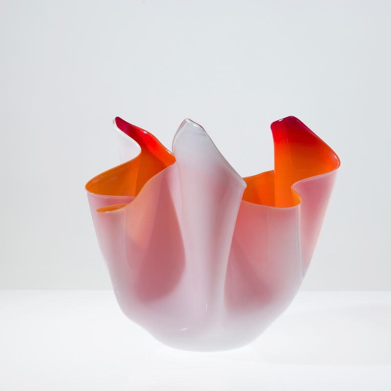 Fazzoletto vase in cased opaline glass in lattimo and arancione.