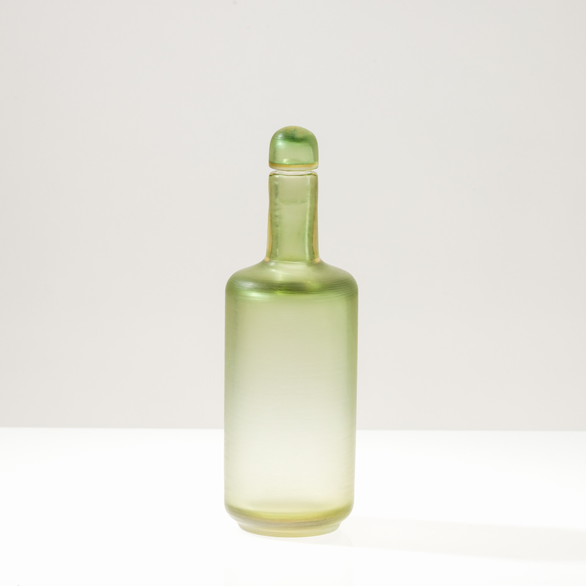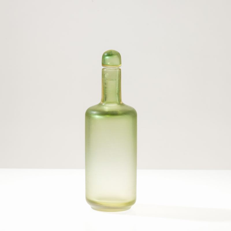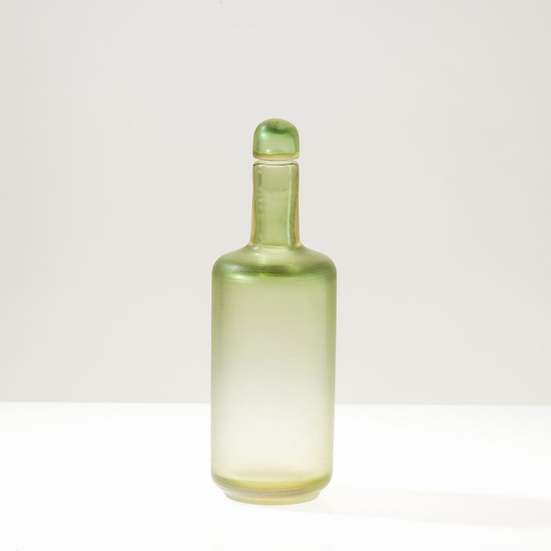 Incisi-series bottle in two-colour sommerso glass with a fully battuto surface carving.