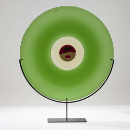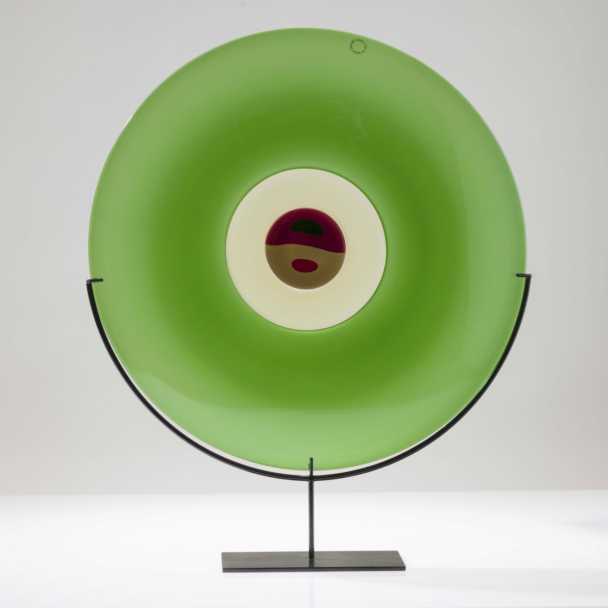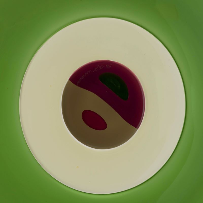 Plate from Piatti di Tapio series in blown glass with incalmo technique and central murrina decoration.