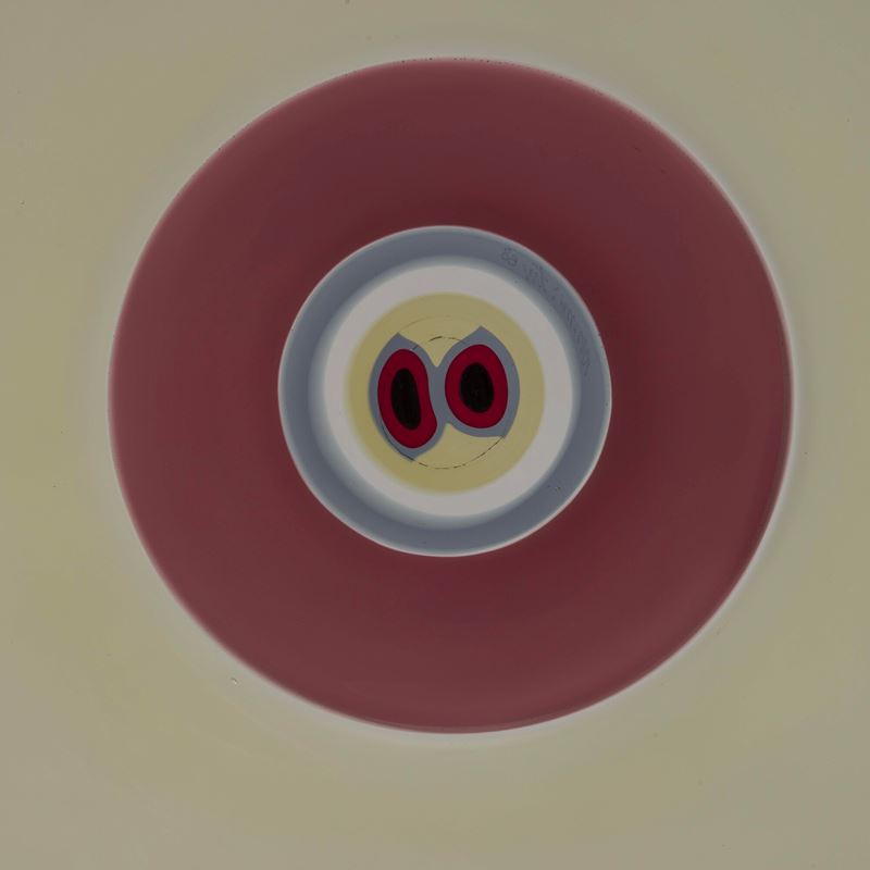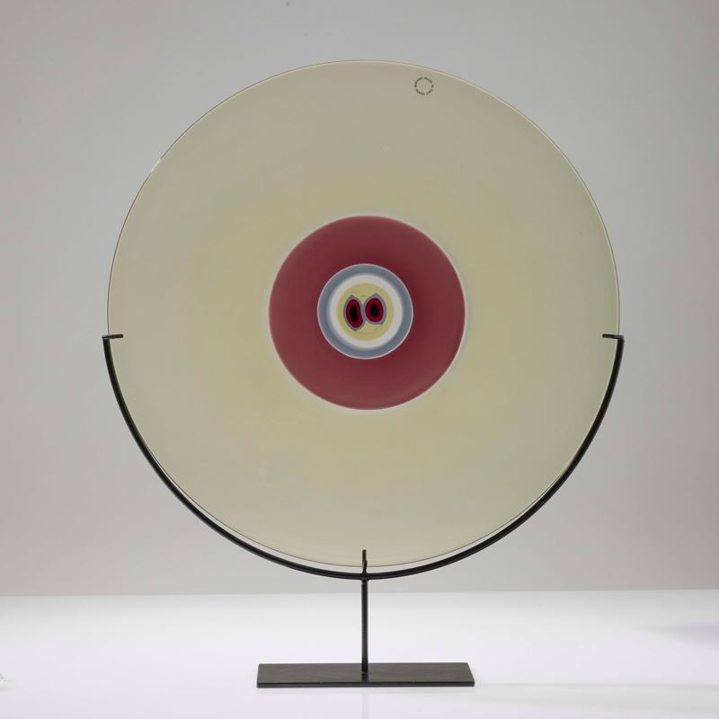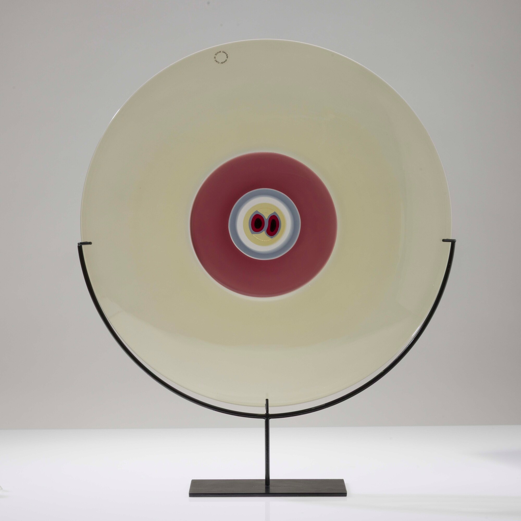 Plate from Piatti di Tapio series in blown glass with incalmo technique and central murrina decoration.