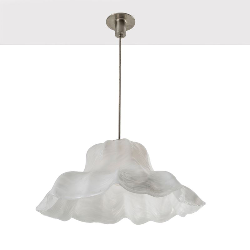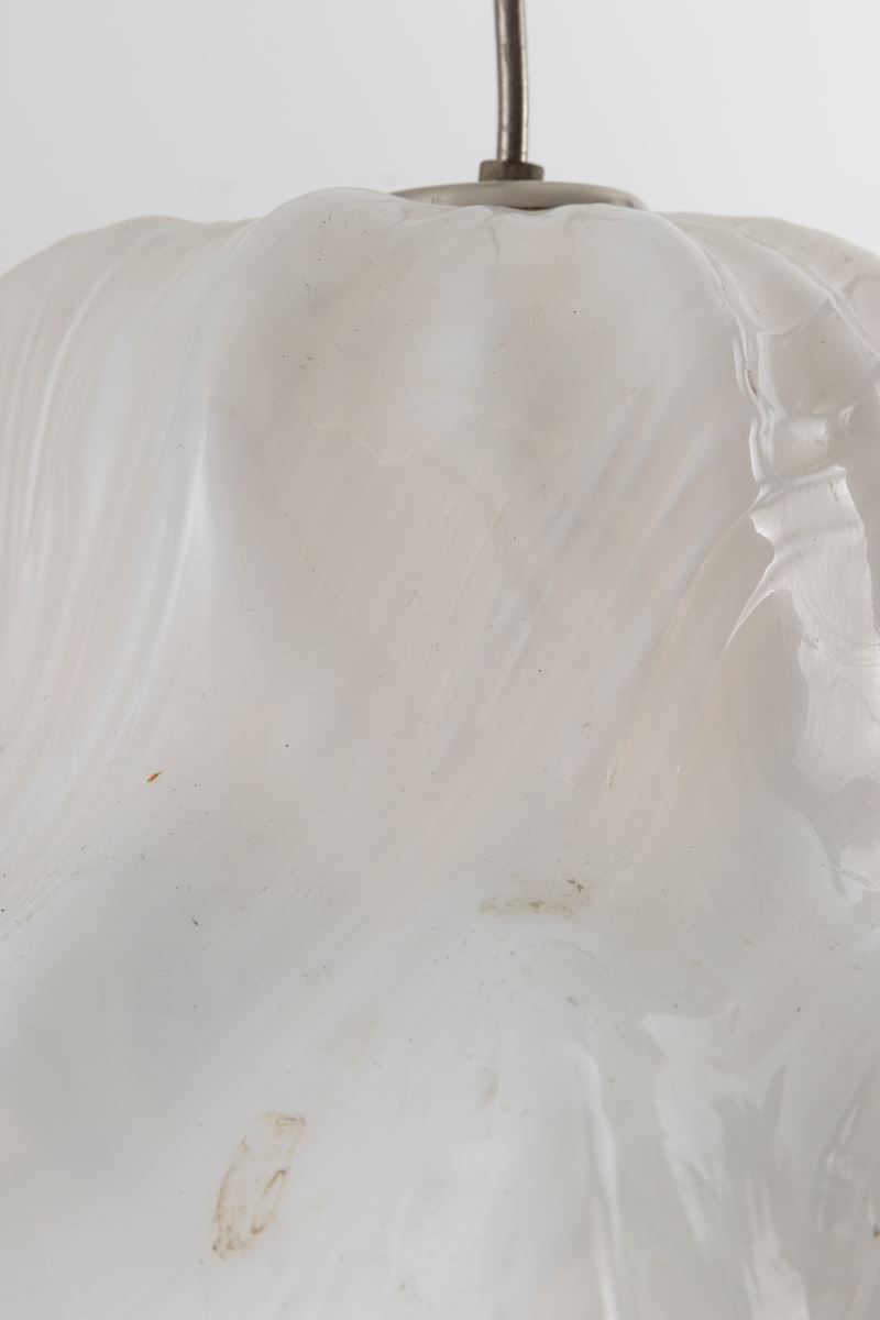 Ninfee series chandelier in blown lattimo and transparent glass.
