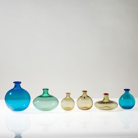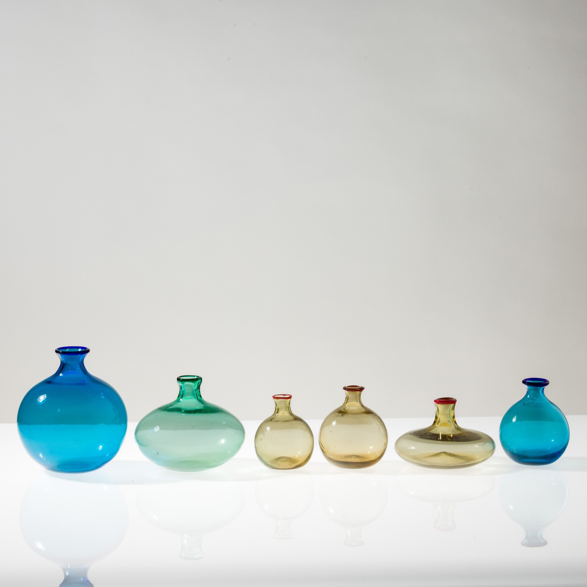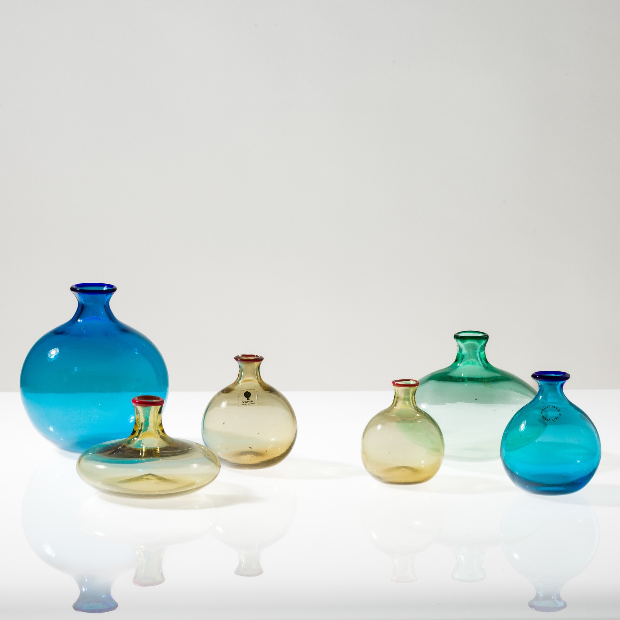 Lot of six Monofiori series globular vases in blown polychrome glass.