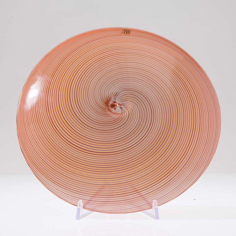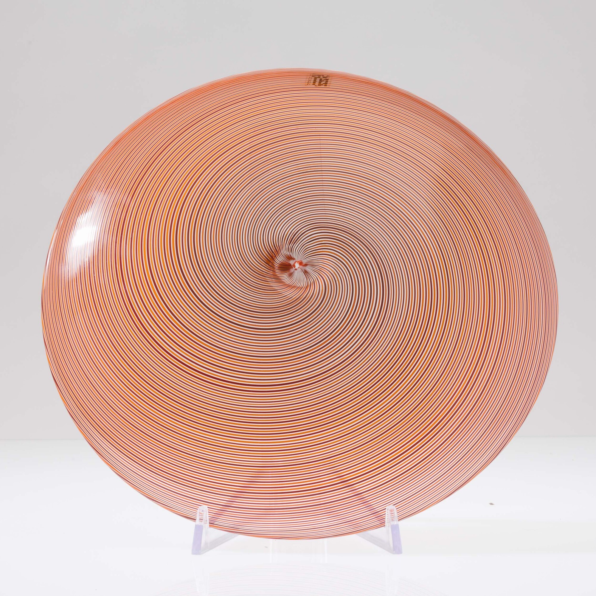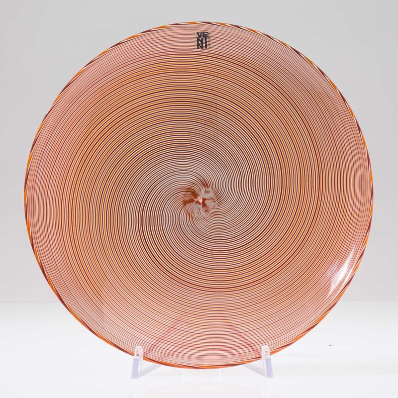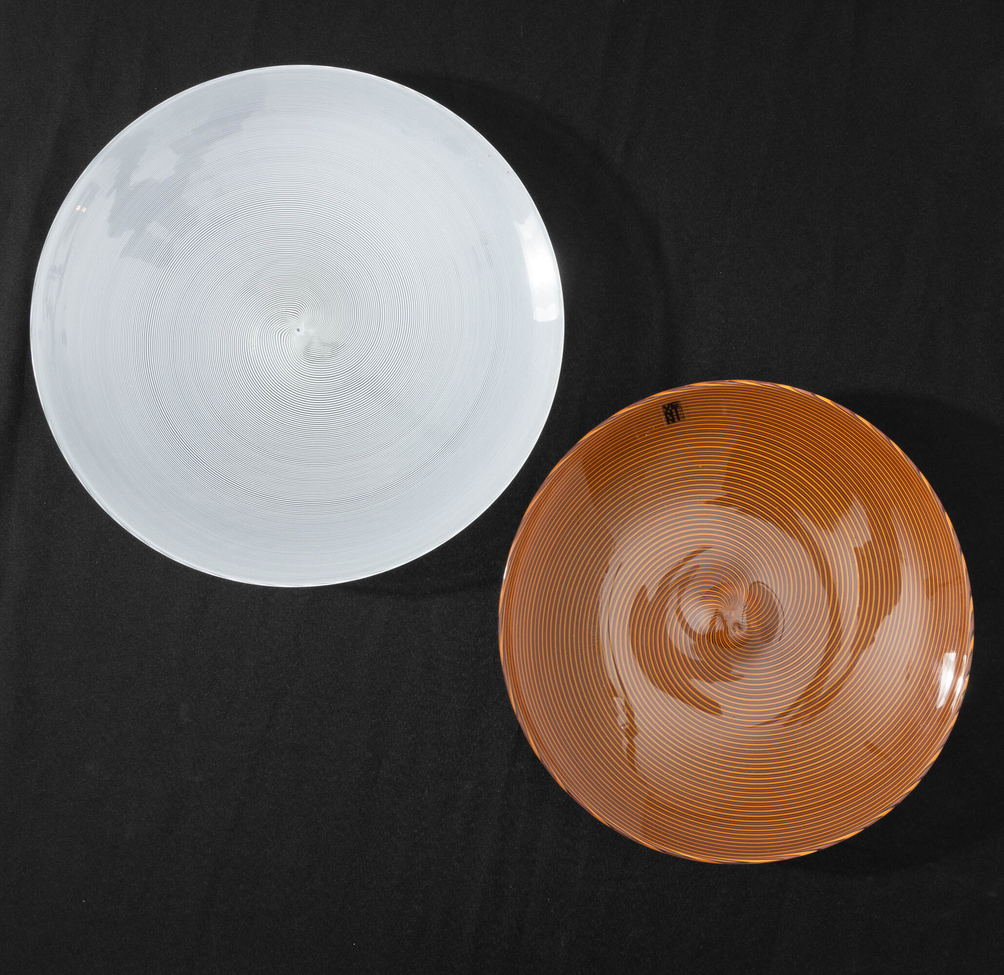 Two plates in blown glass with decoration of mezza filigrana lattimo and polychrome filigrana.