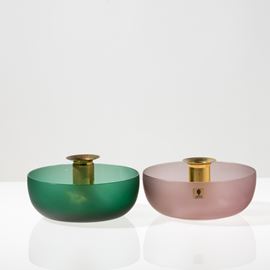 Pair of circular-section candlesticks in the shape of a cup, made of sandblasted glass.
