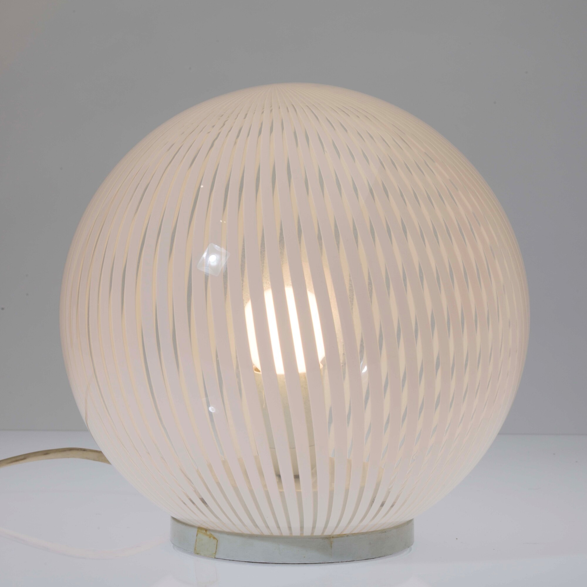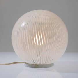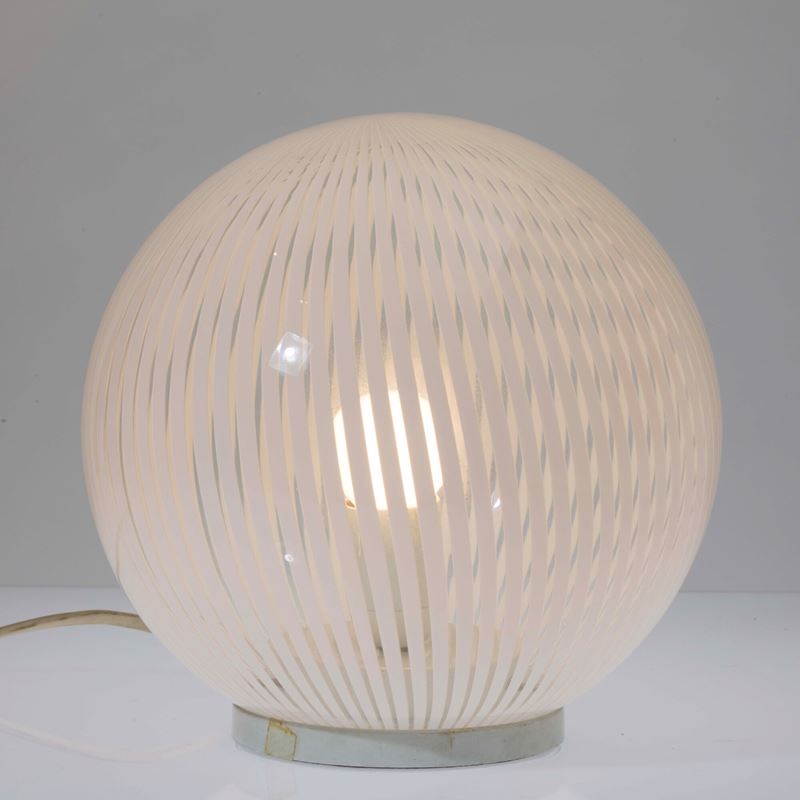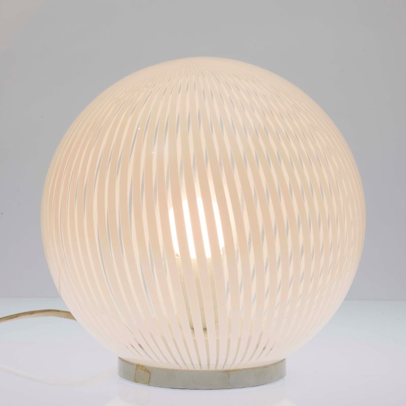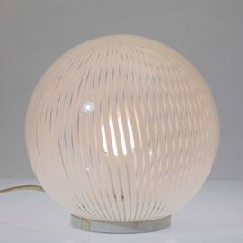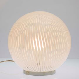 Tessuto series table lamp in blown transparent glass with lattimo canes decoration.