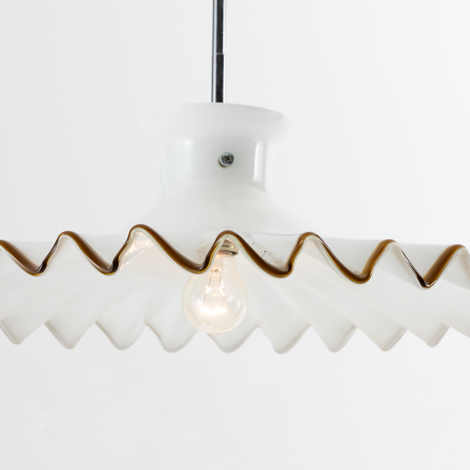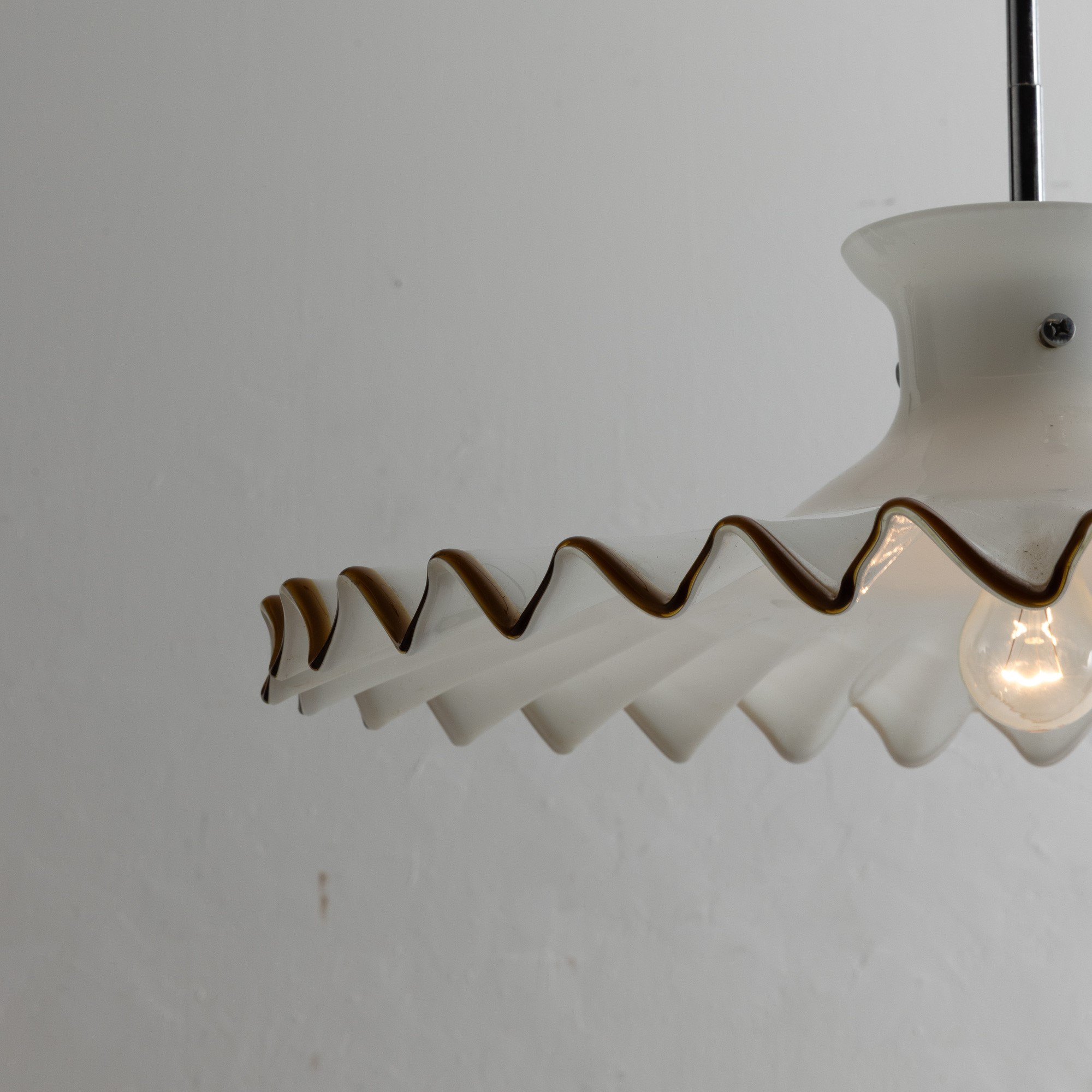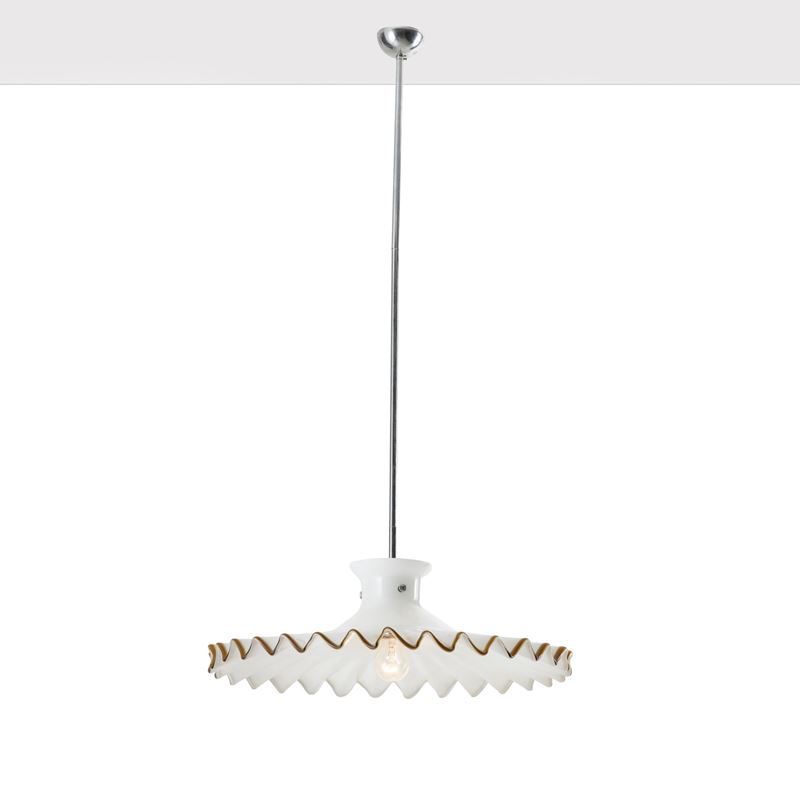 Pinocchio chandelier in lattimo glass with tea thread decoration.