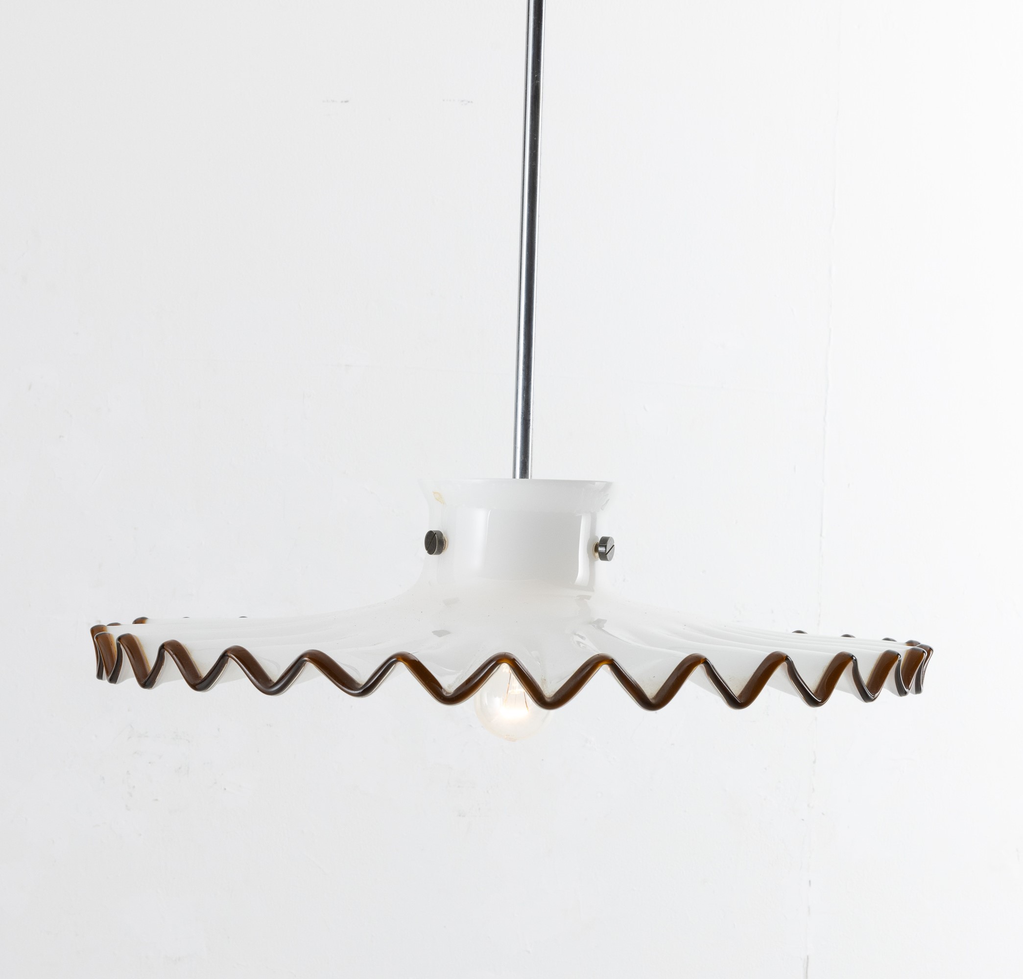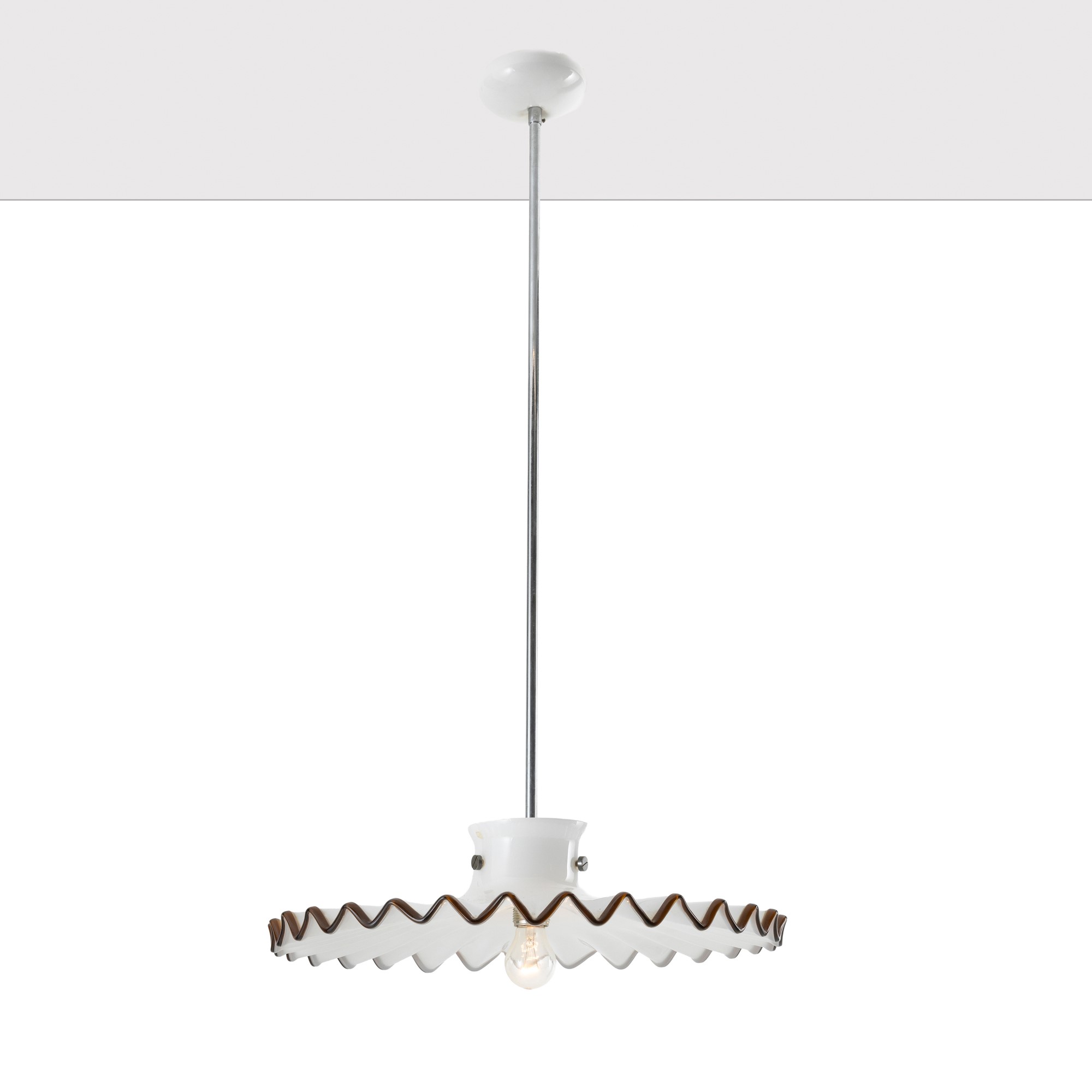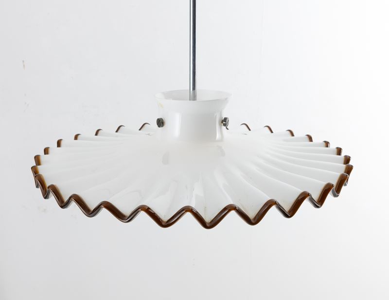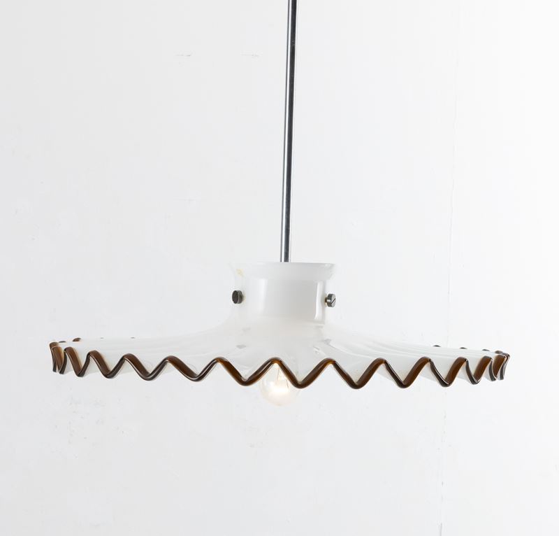 Pinocchio chandelier in lattimo glass with tea thread decoration.