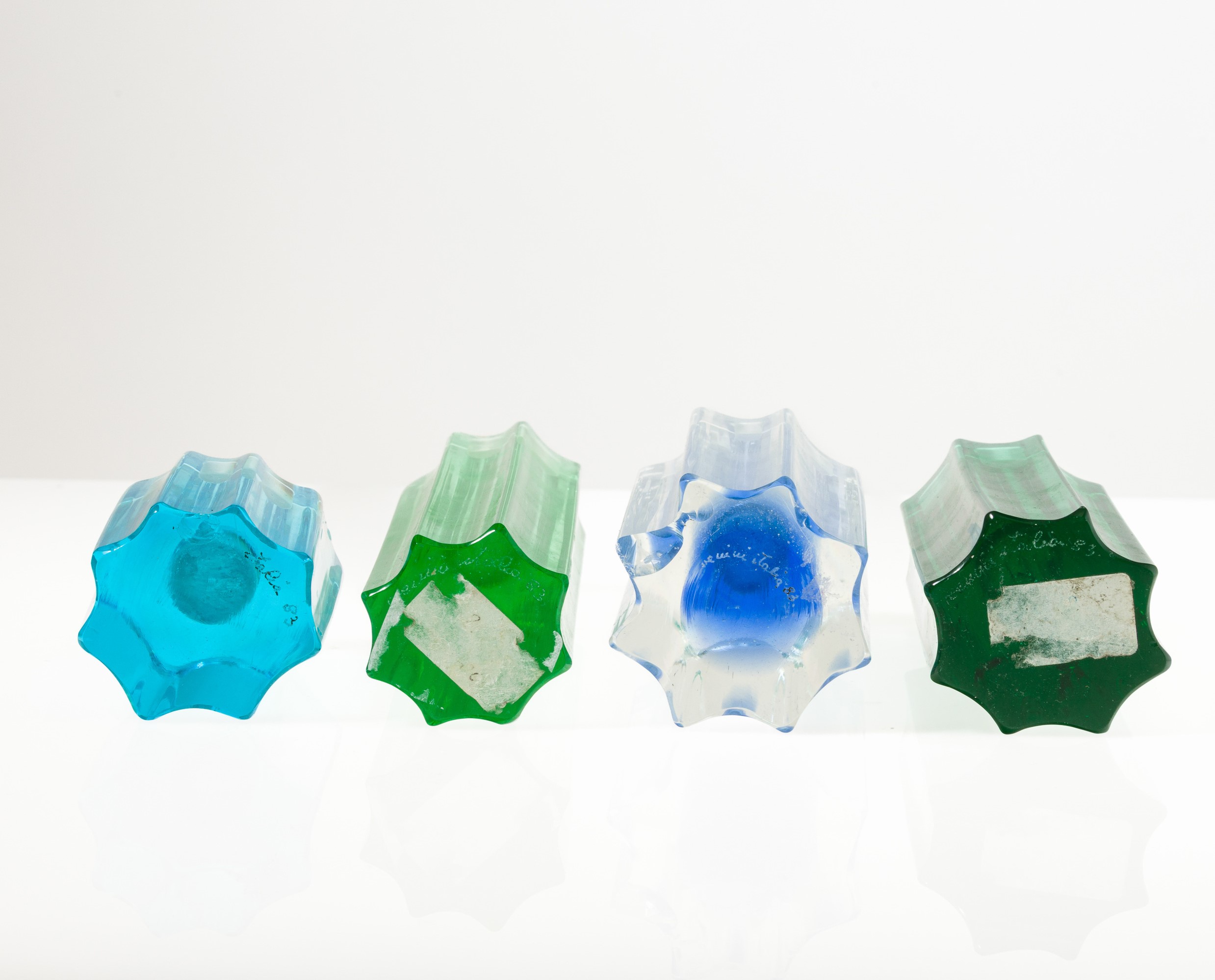 Lot of four Dorico series candlesticks in molded blown polychrome glass.