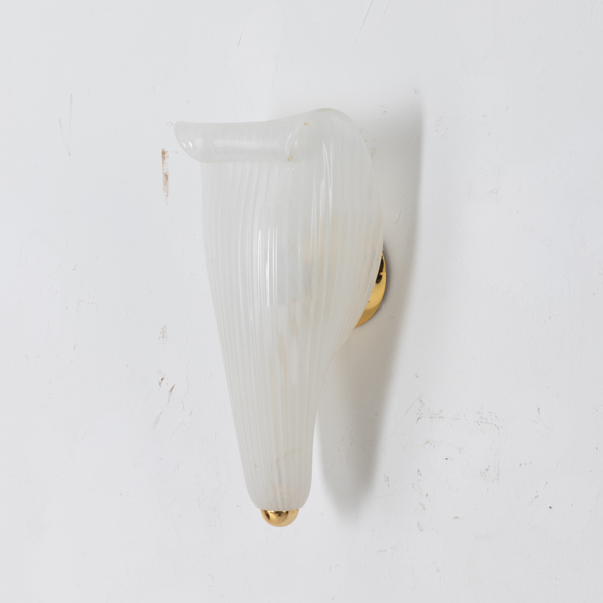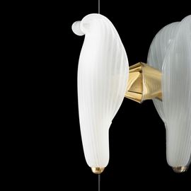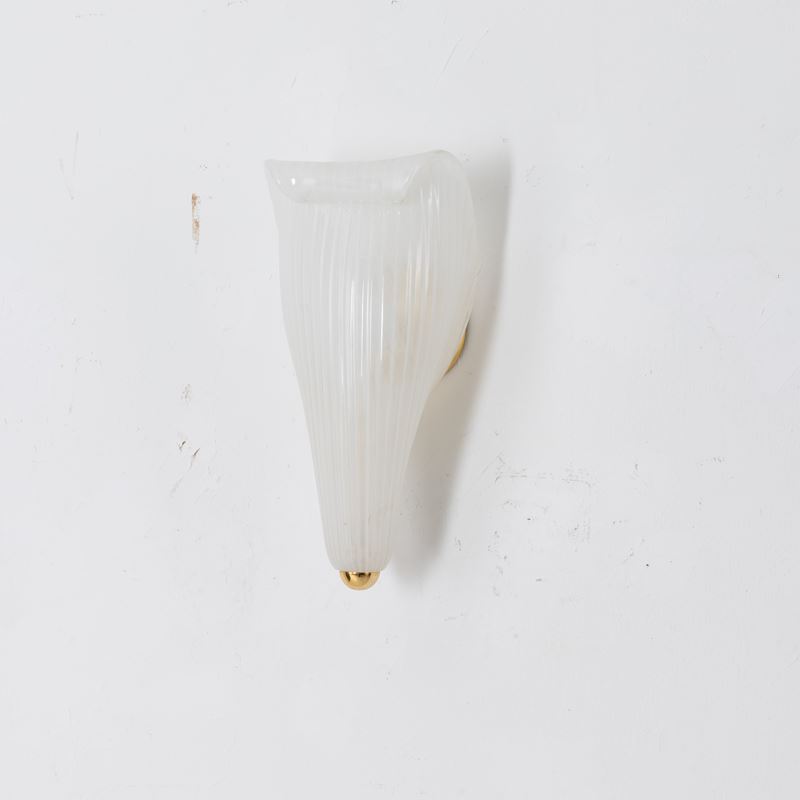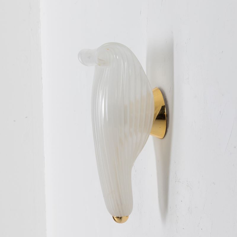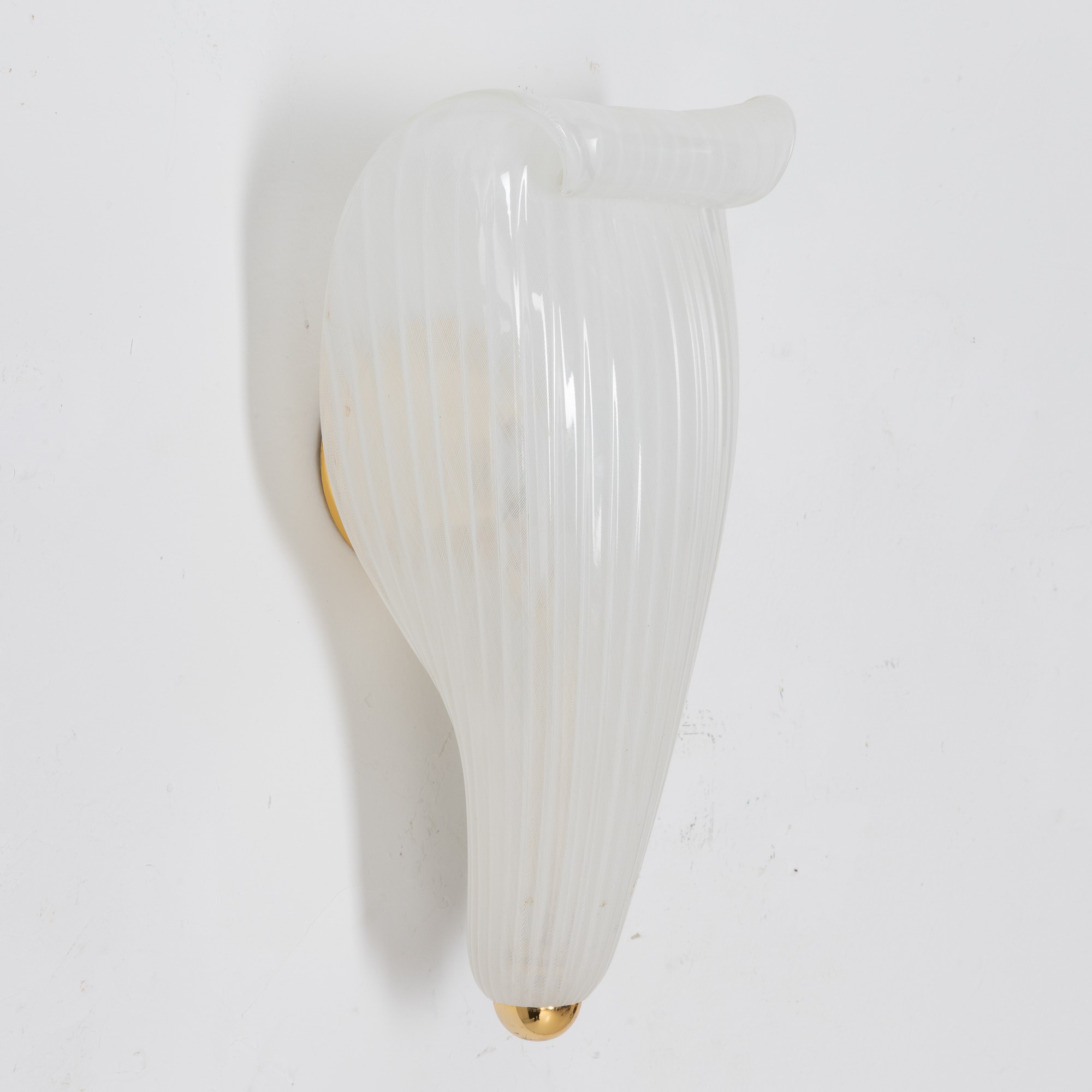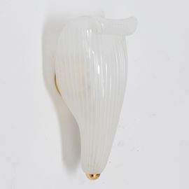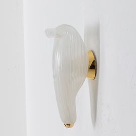 Leaf-shaped wall light in blown glass with lattimo canes decoration.