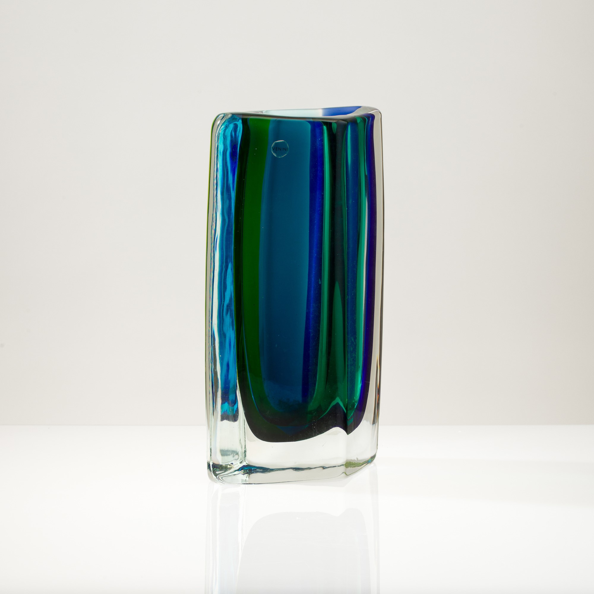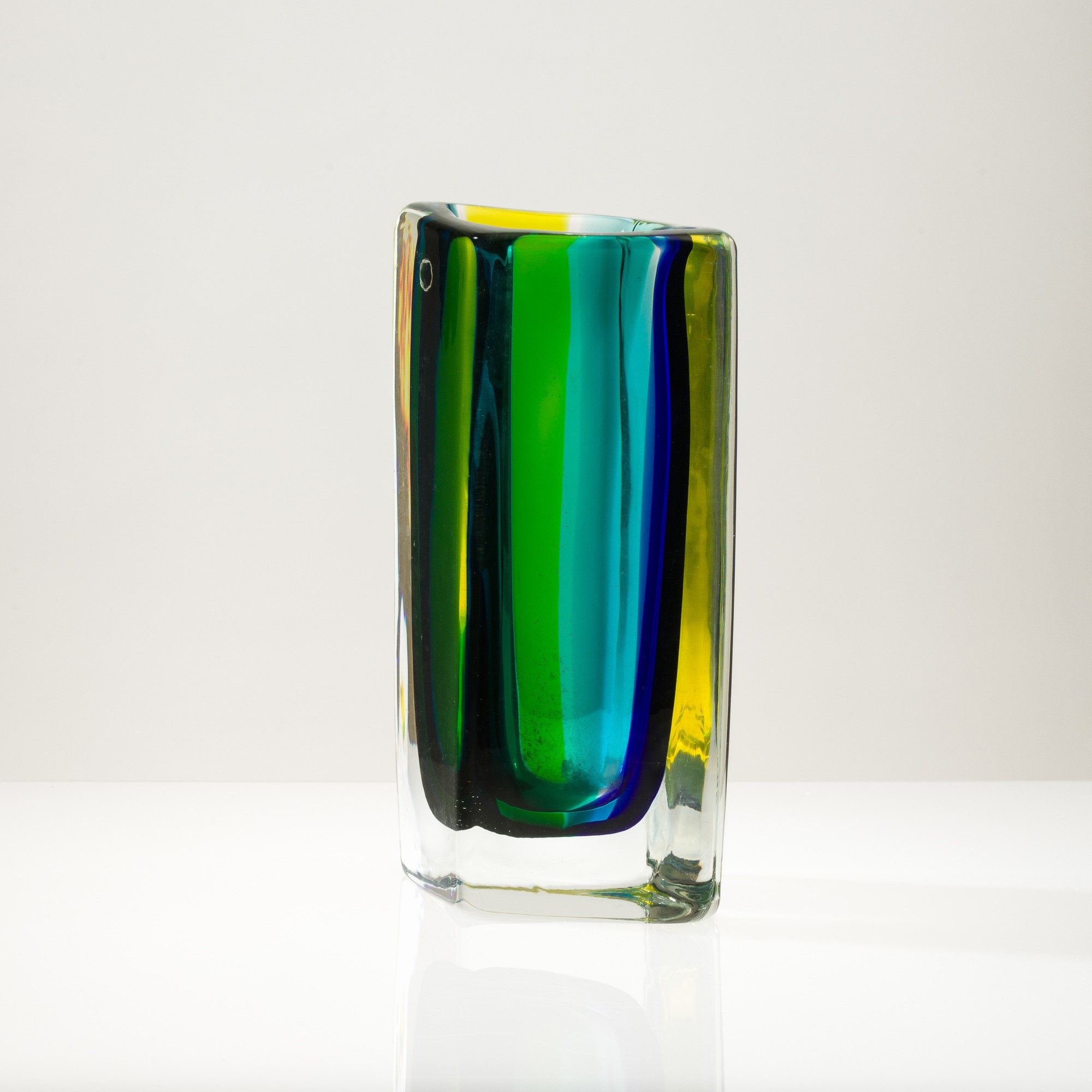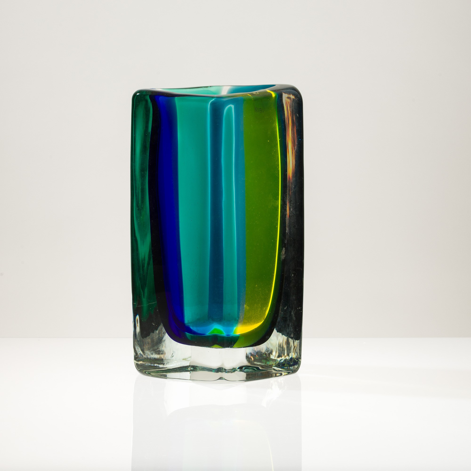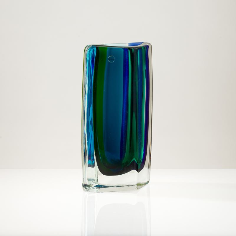 Fiji vase in heavy glass with polychrome sommerso bands.