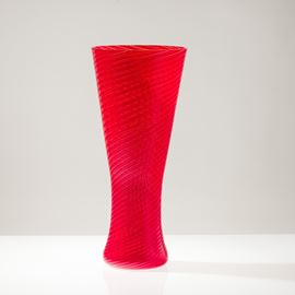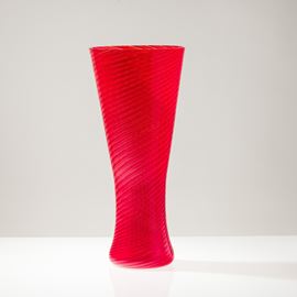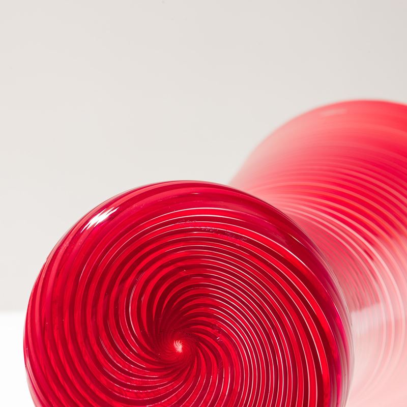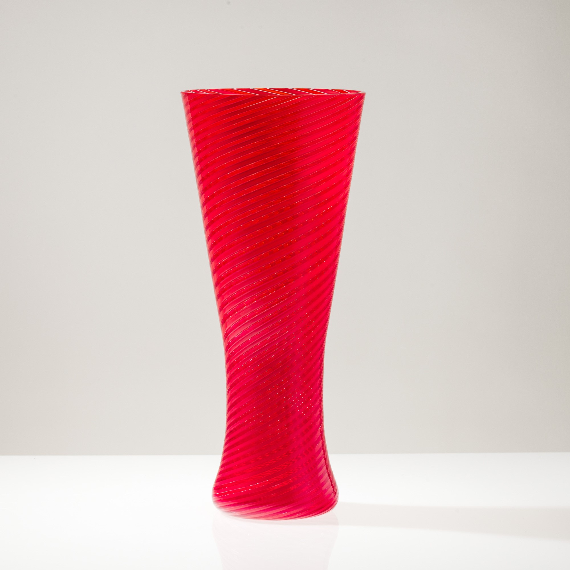 Tornado vase in blown glass with twisted canes decoration in transparent red and red antique.
