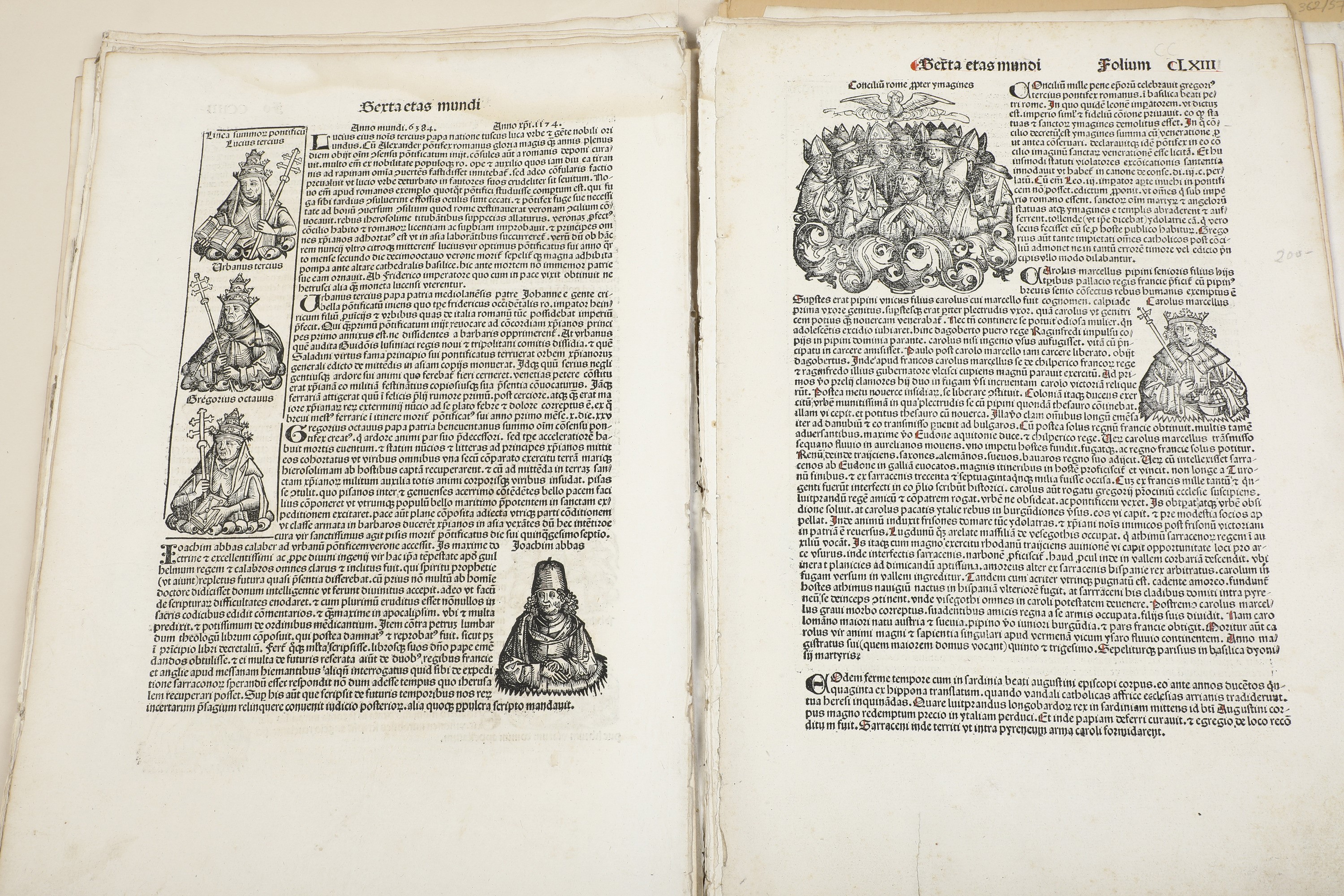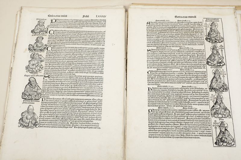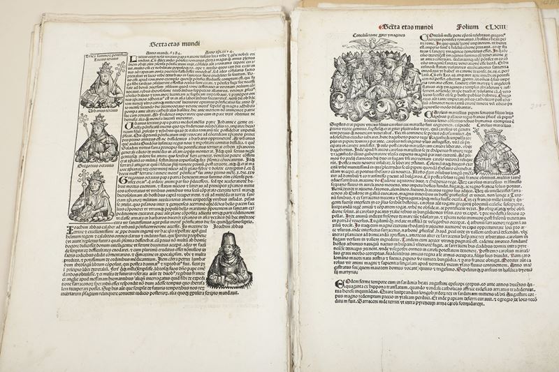 Collezione di 31 fogli contenenti xilografie di imperatori e pontefici; 9 contenenti xilografie di città, tra cui Costantinopoli, Lituania, Bavaria, Tolosa, Prussia, Lione, Marsiglia, tratti dalle Cronache.