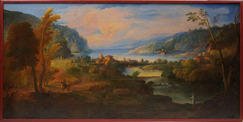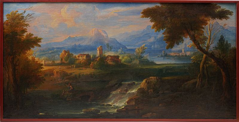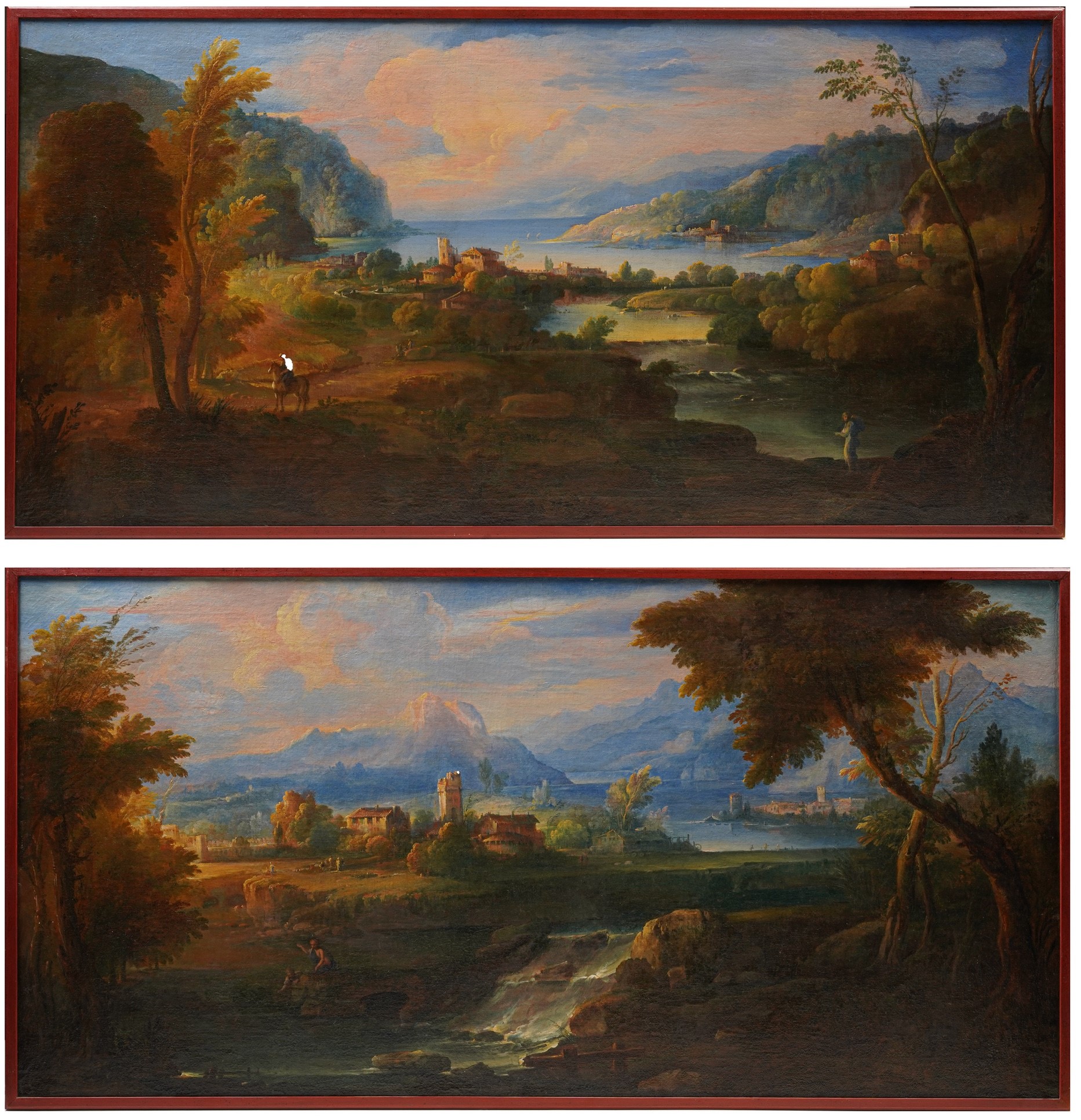Scuola veneta del XVIII secolo Paesaggi fluviali con contadini
