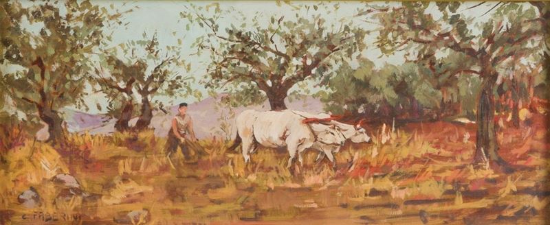Carlo Fabbrini (XX secolo) All'aratro sotto l'uliveta