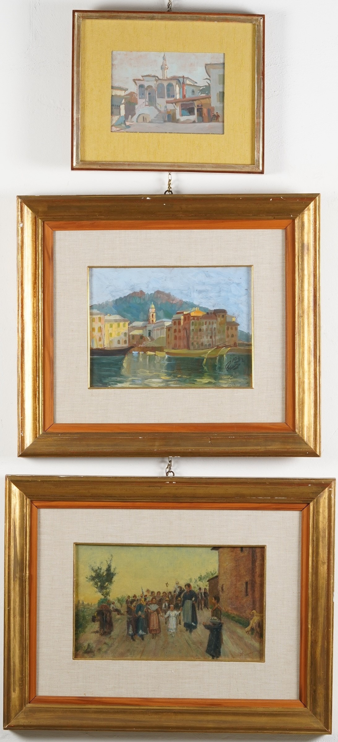 Gruppo di tre dipinti di vario soggetto (il più piccolo firmato Rodocanachi / Moschea di Smirne