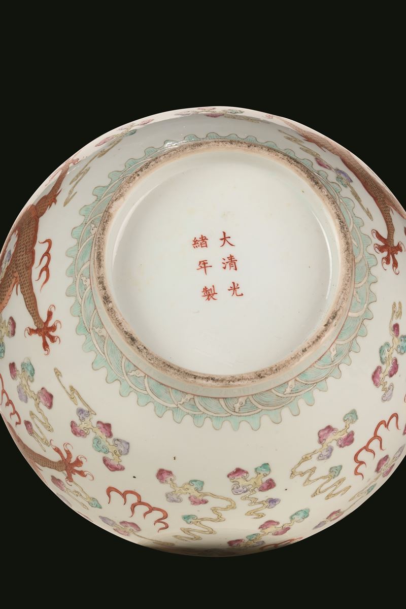 A porcelain vase with a red and gold decor of a dragon and clouds, China, Republic