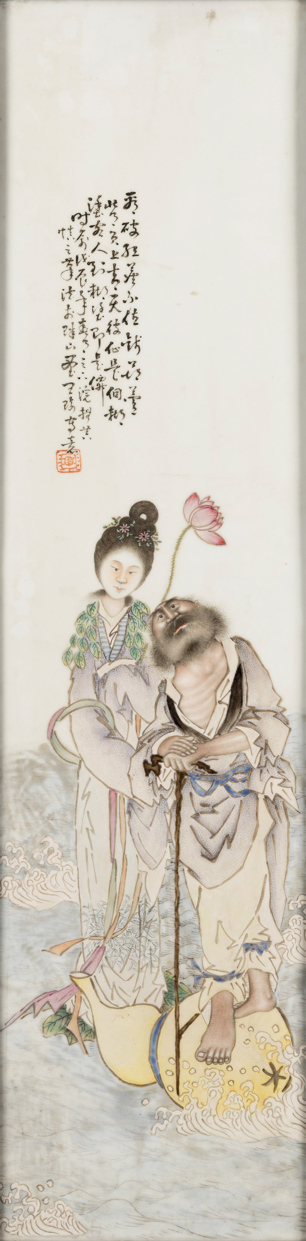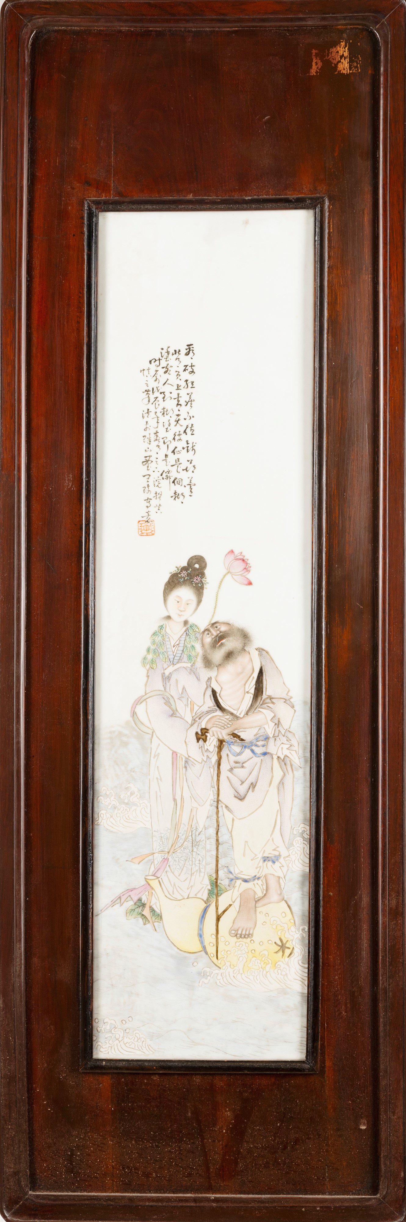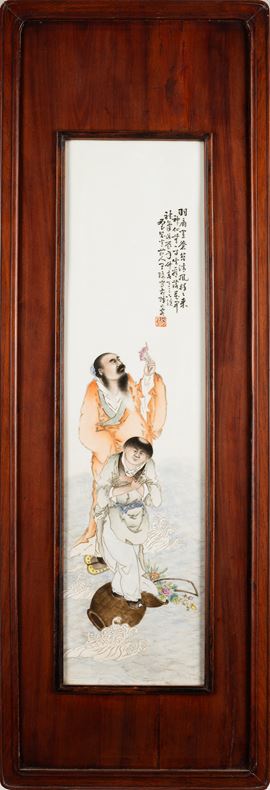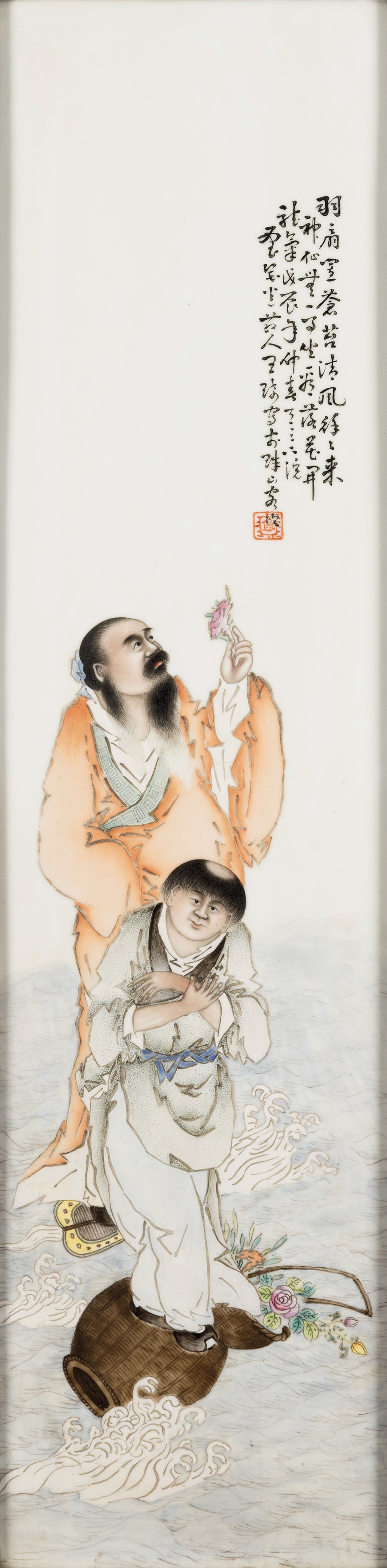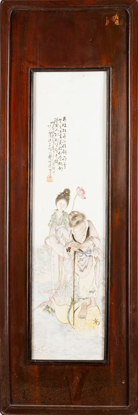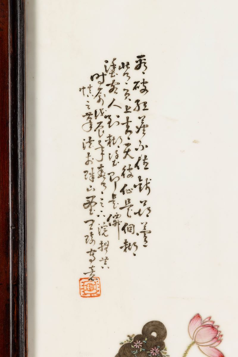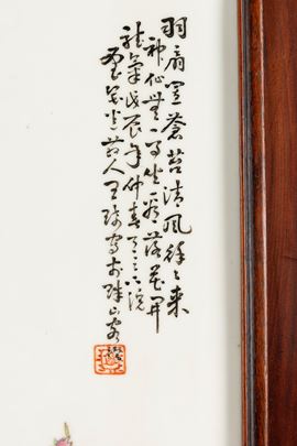 Pair of porcelain plaques with characters in the style of Wang Qi and inscriptions indicating the spring of 1928, painted [..]