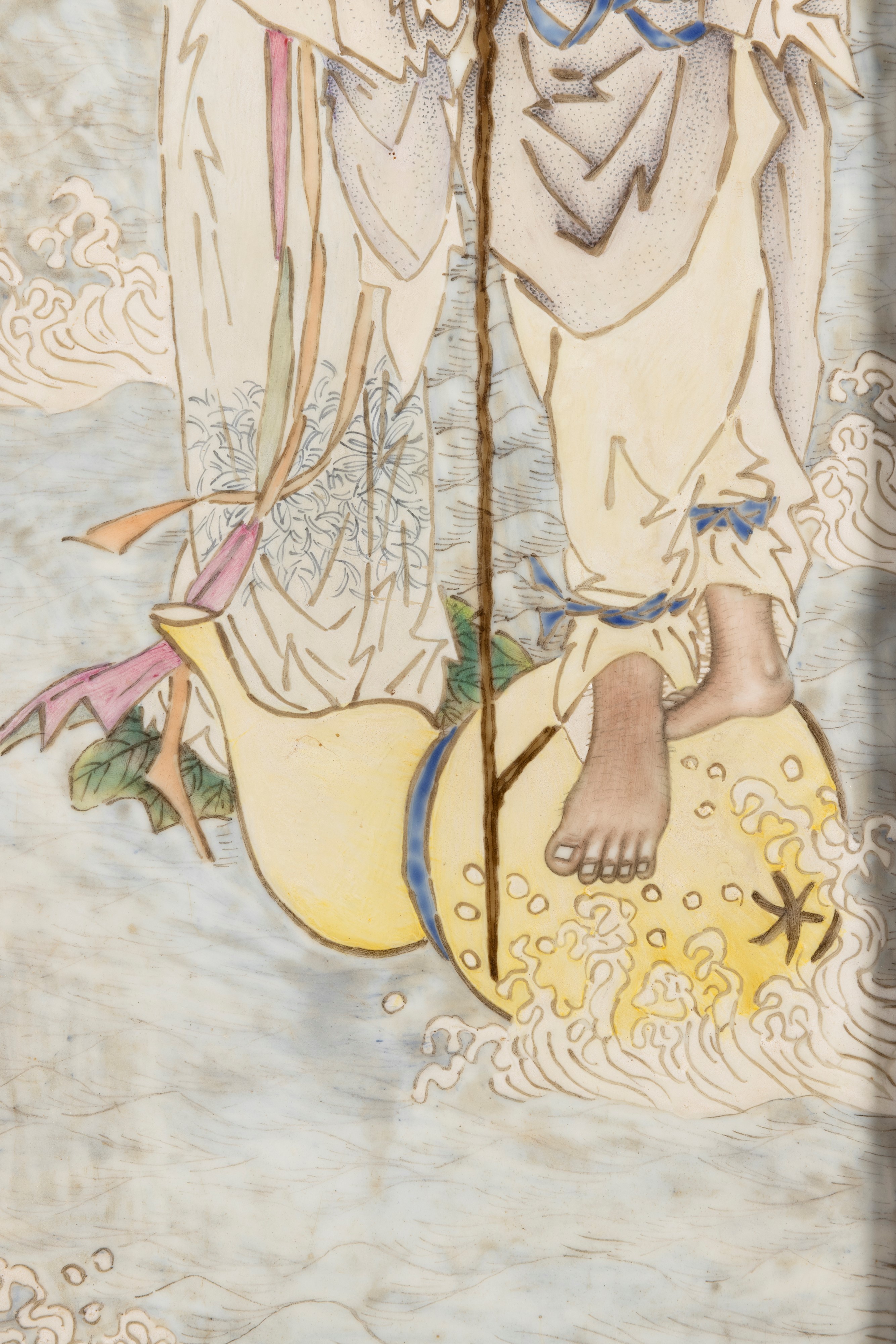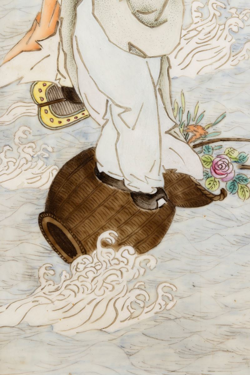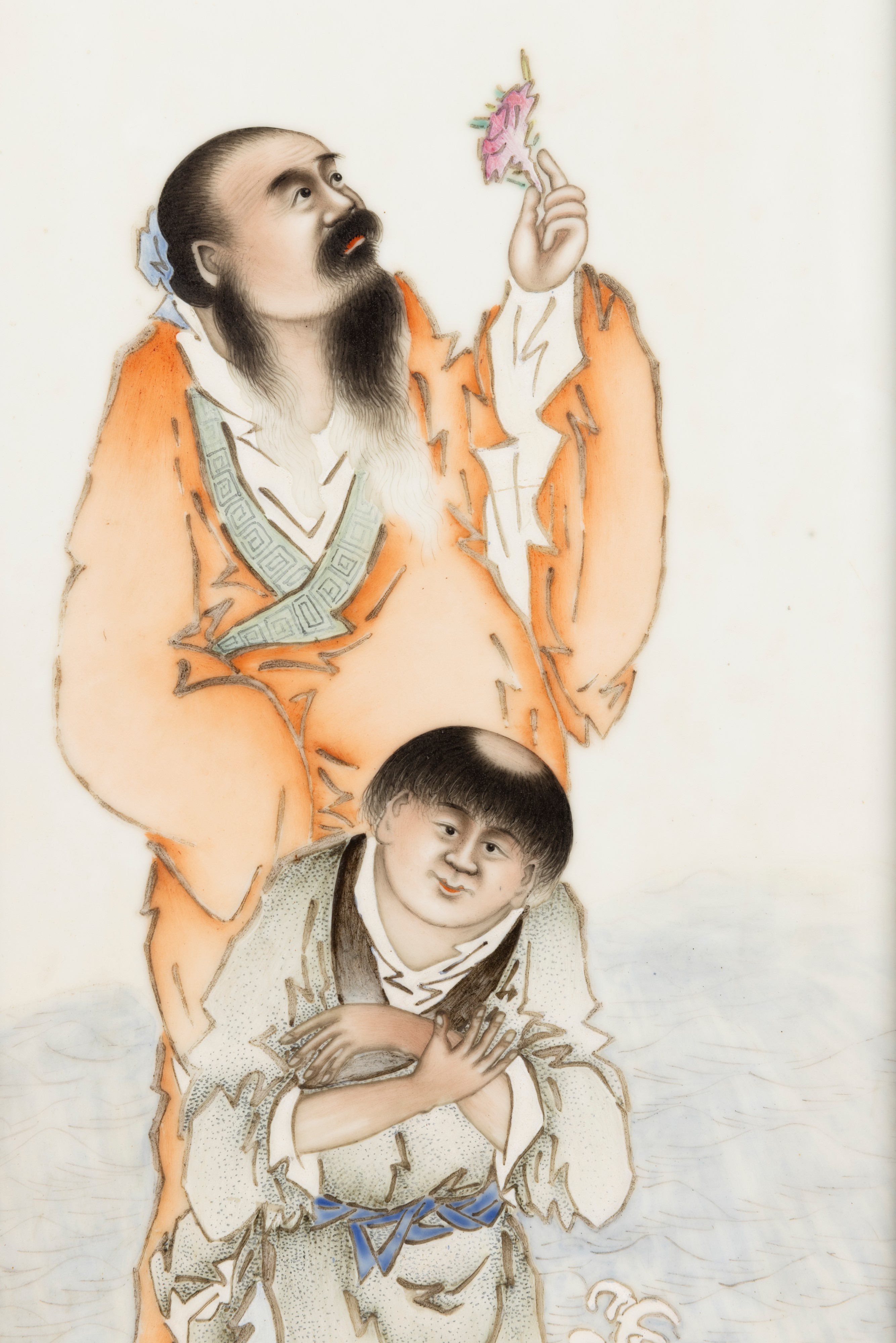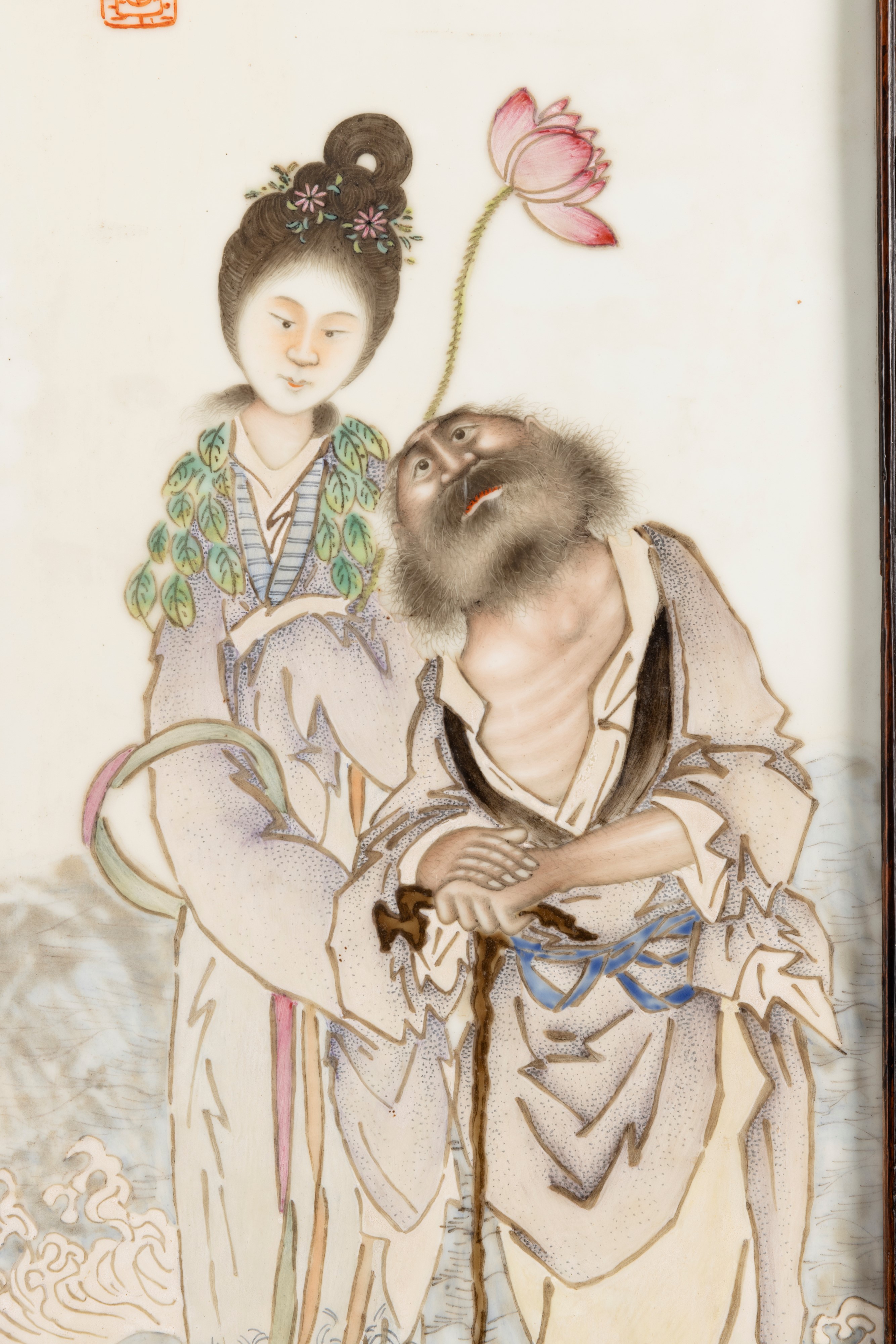 Pair of porcelain plaques with characters in the style of Wang Qi and inscriptions indicating the spring of 1928, painted [..]