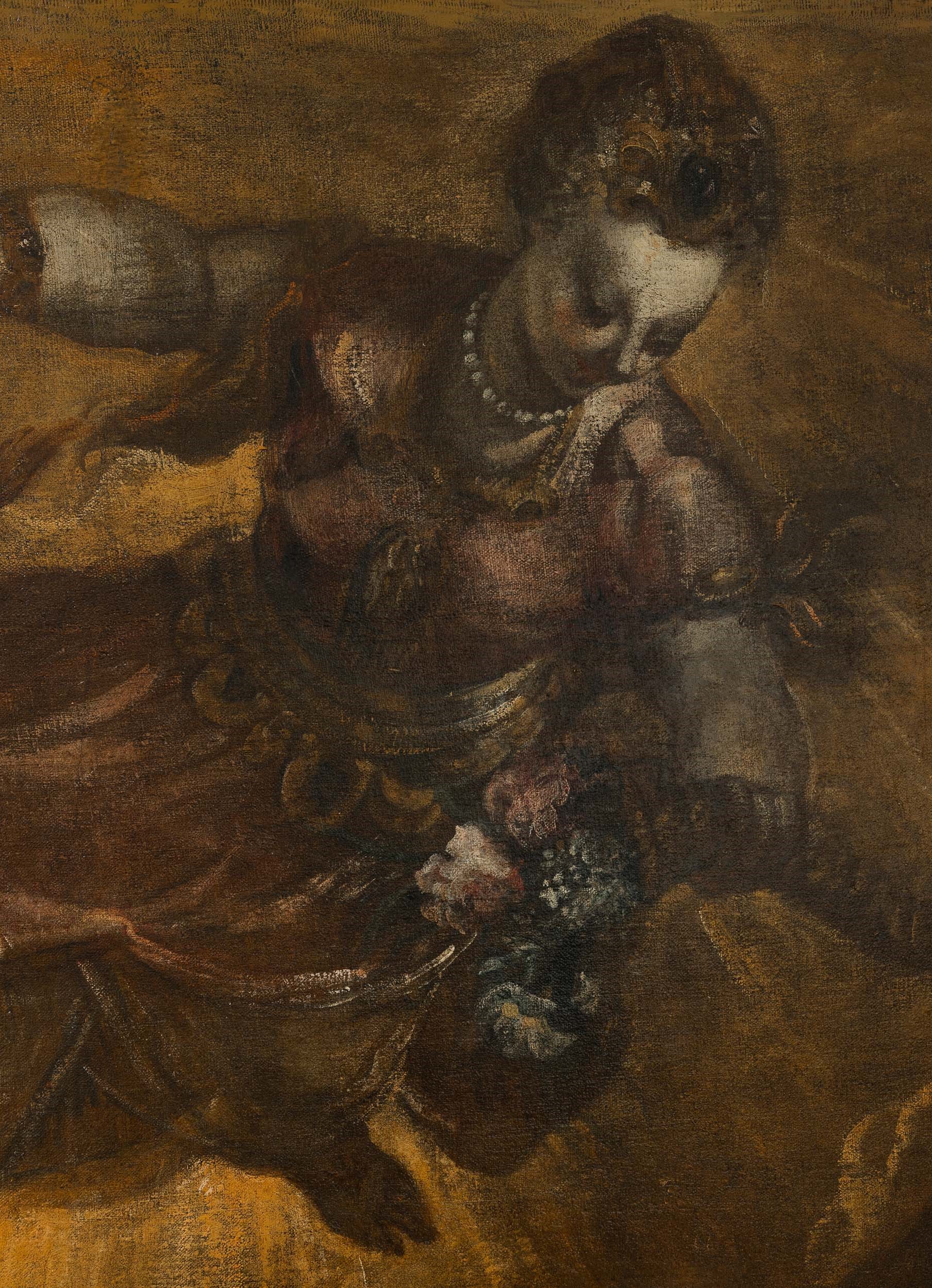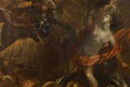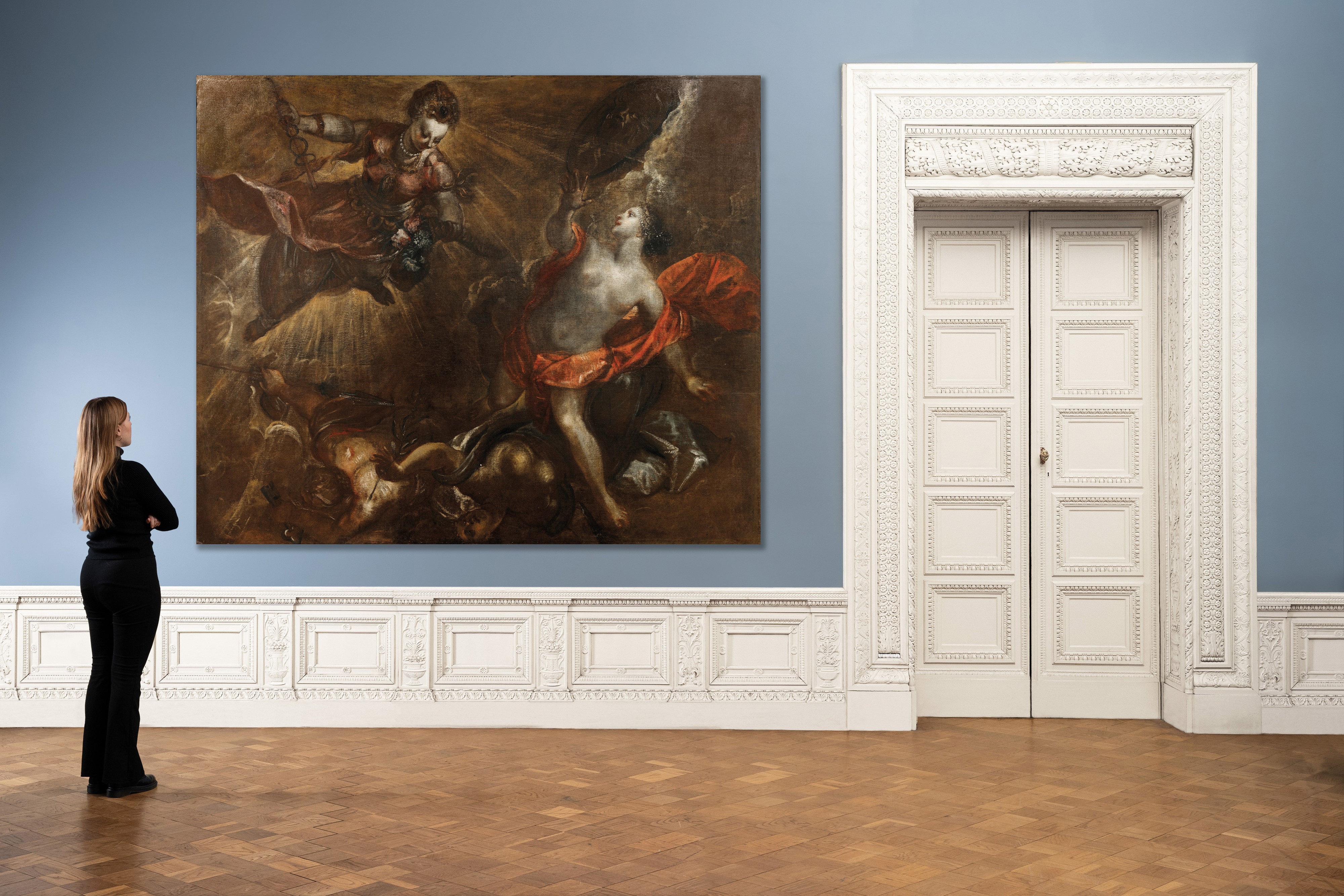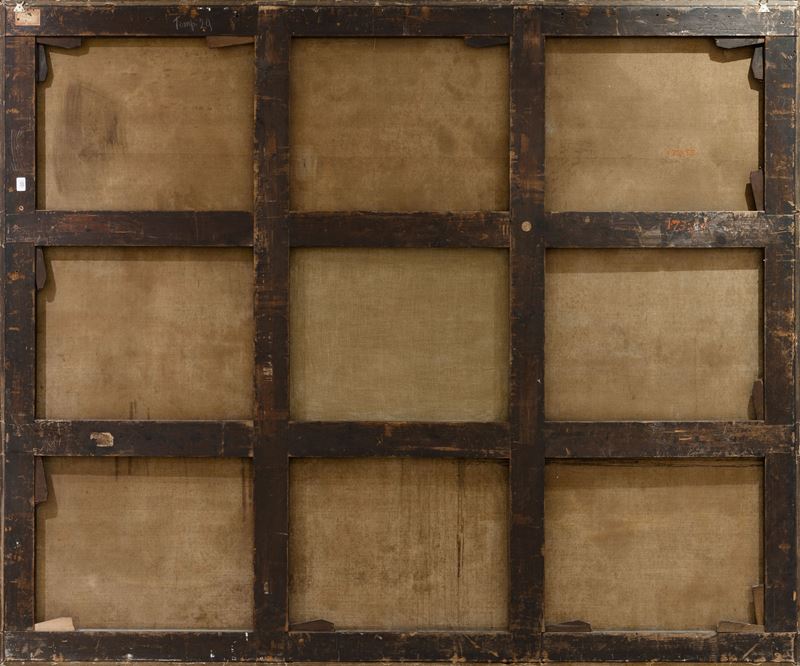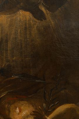Pubblicata come opera di Jacopo Robusti detto il Tintoretto da von der Bercker nel 1935, e datata tra il 1580 e il 1588, la tela qui presentata è un tipico esempio della produzione di opere di grandi dimensioni ideata dai pittori veneziani e chiamate teleri, applicati direttamente alle pareti e spesso concepiti a gruppi come cicli decorativi unitari. Oggetto spesso di importanti committenze pubbliche, come per esempi le scuole grandi o le confraternite locali, questo particolare tipo di produzione artistica divenne tipica per i veneziani a partire dal Quattrocento, in quanto permetteva di realizzare grandi cicli decorativi senza ricorrere alla tecnica dell’affresco che, a causa del clima umido della laguna, era destinata a un inevitabile e progressivo deterioramento.