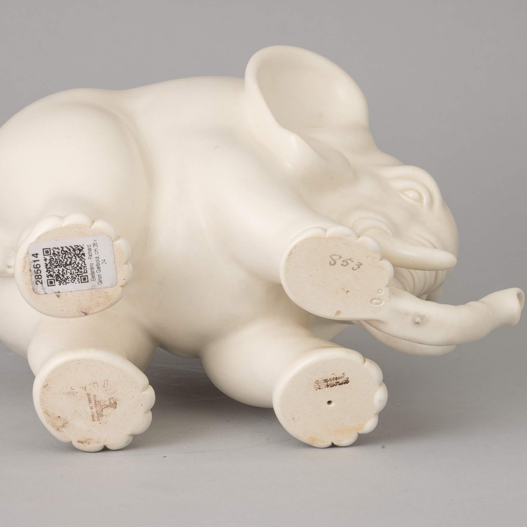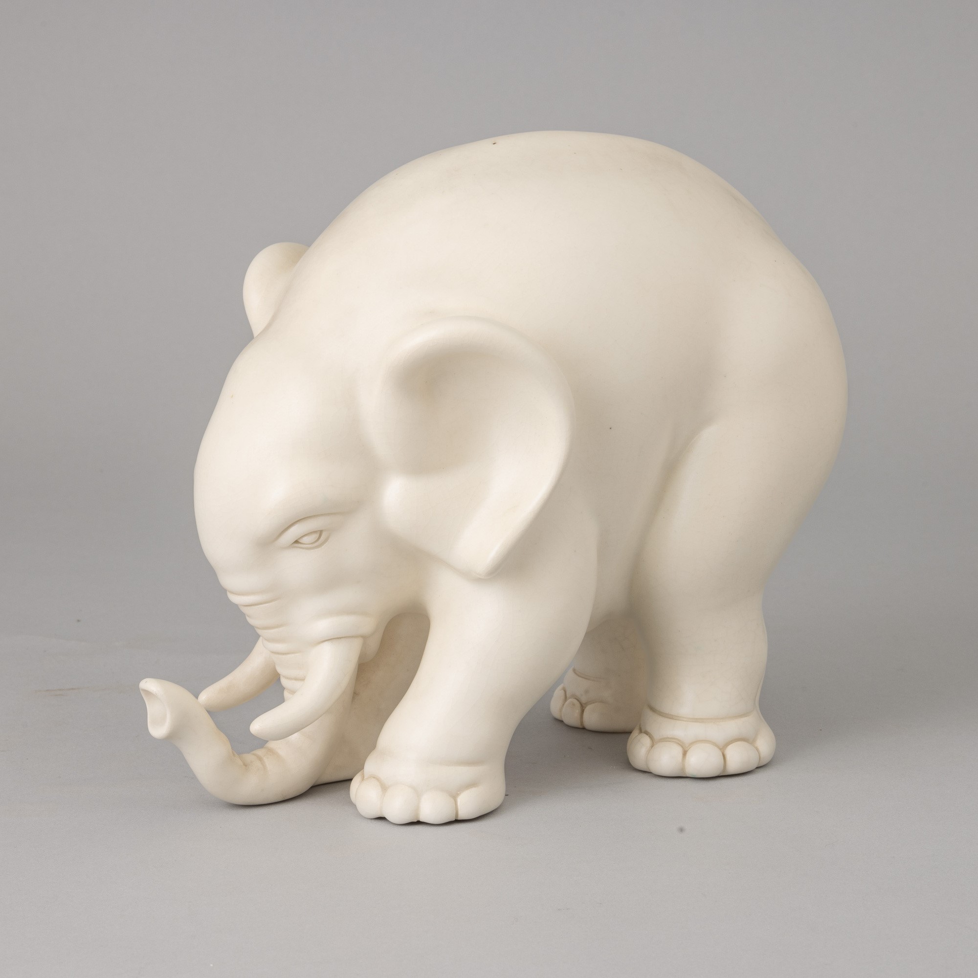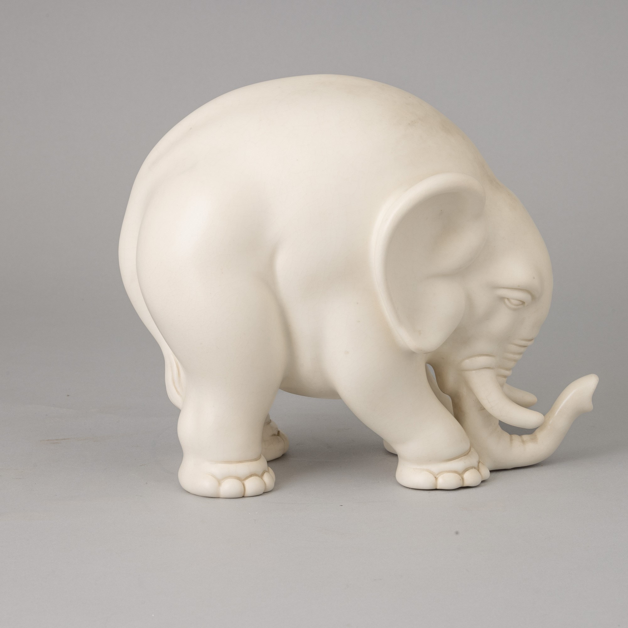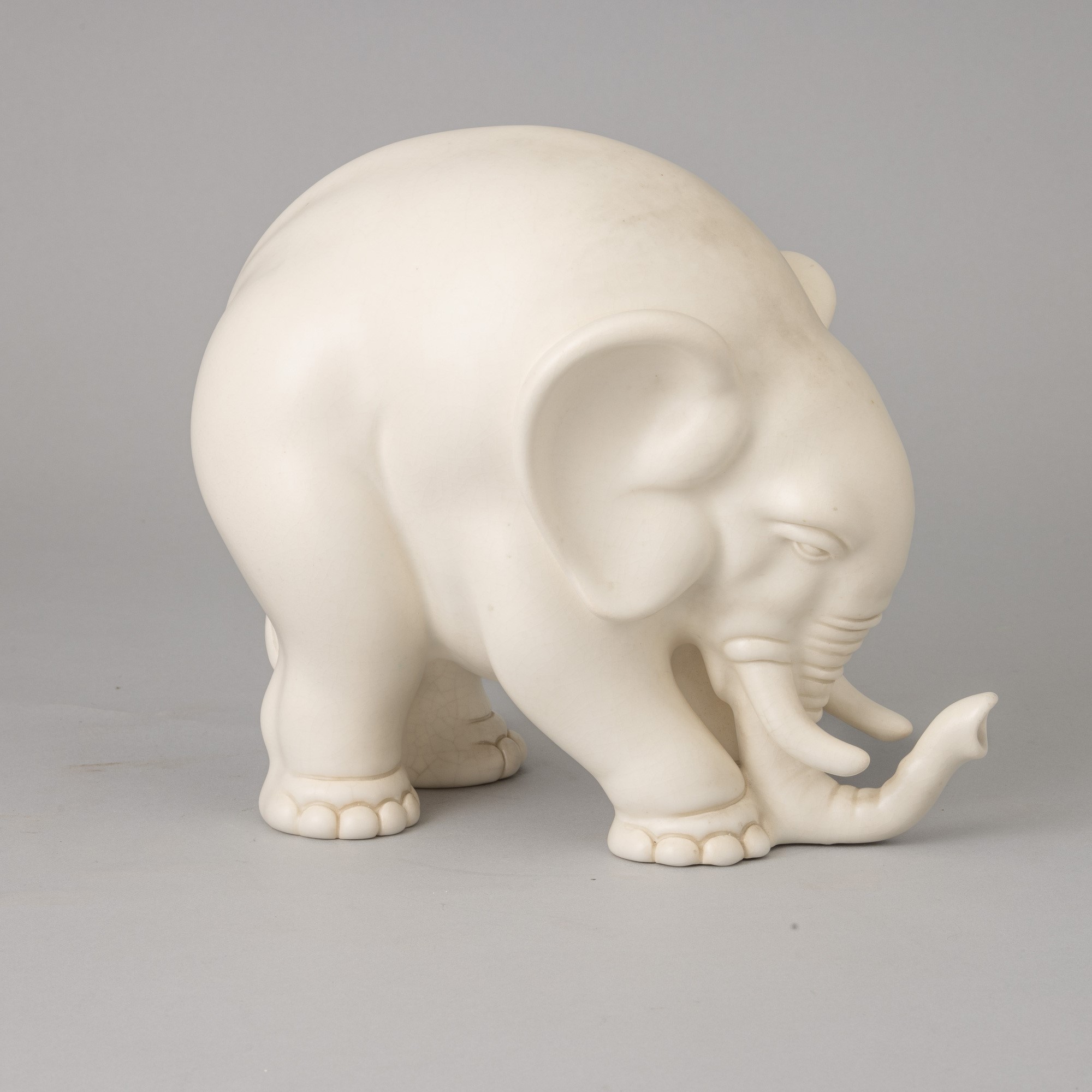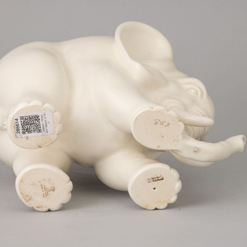 Soprammobile in forma di elefante in terraglia a colaggio.