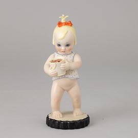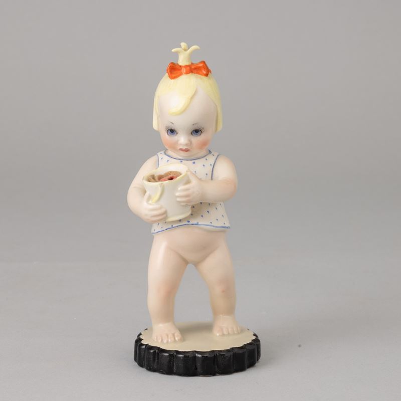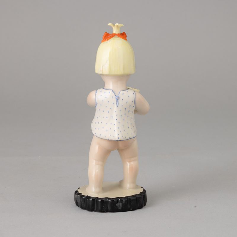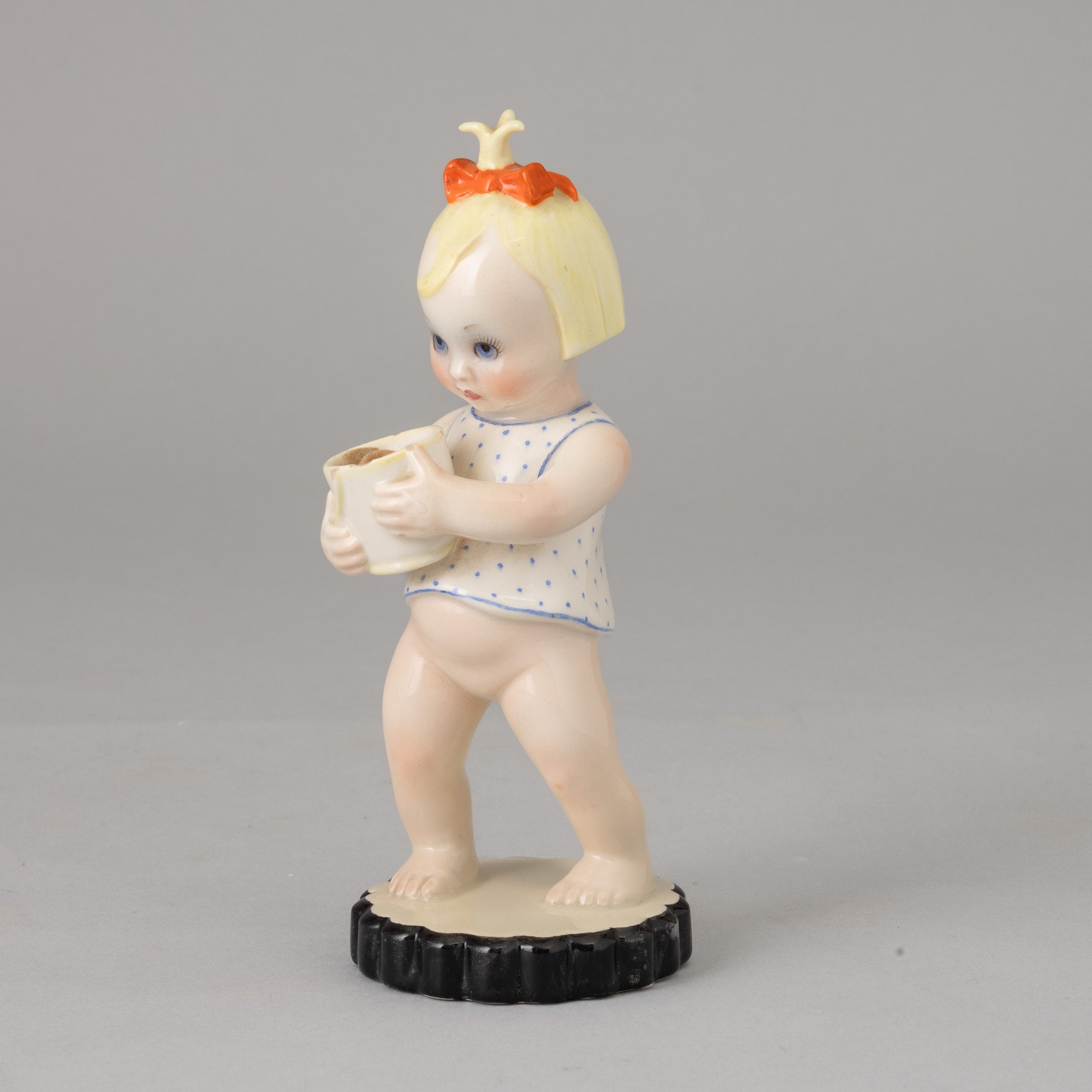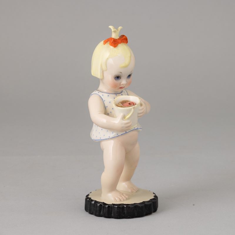 Earthenware figure of girl with bucket with polychrome decoration.