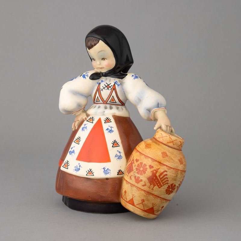 Earthenware girl in traditional Sardinian costume with polychrome decoration.