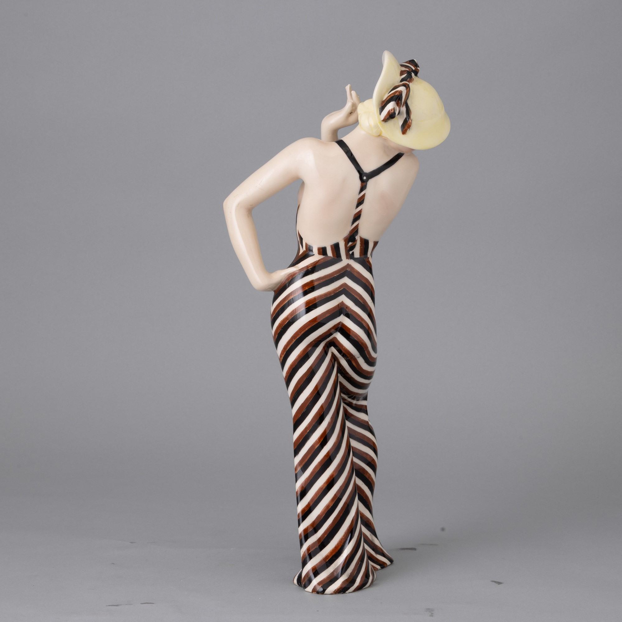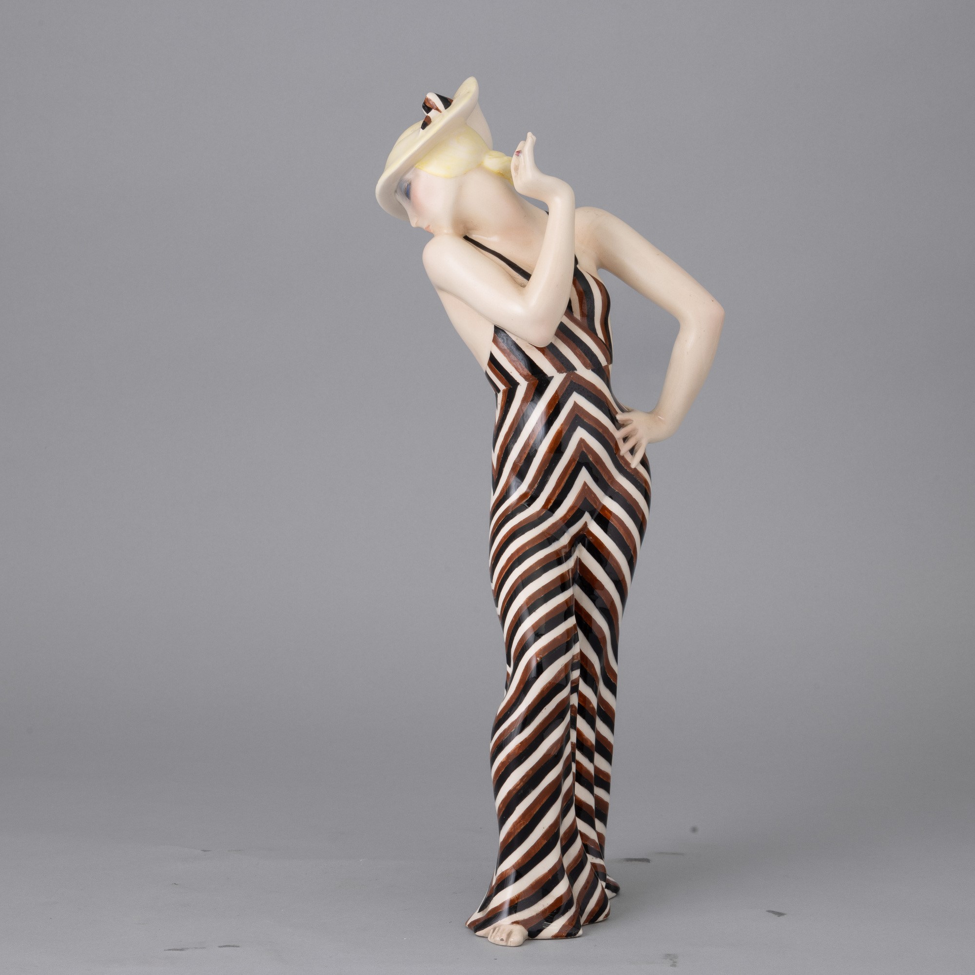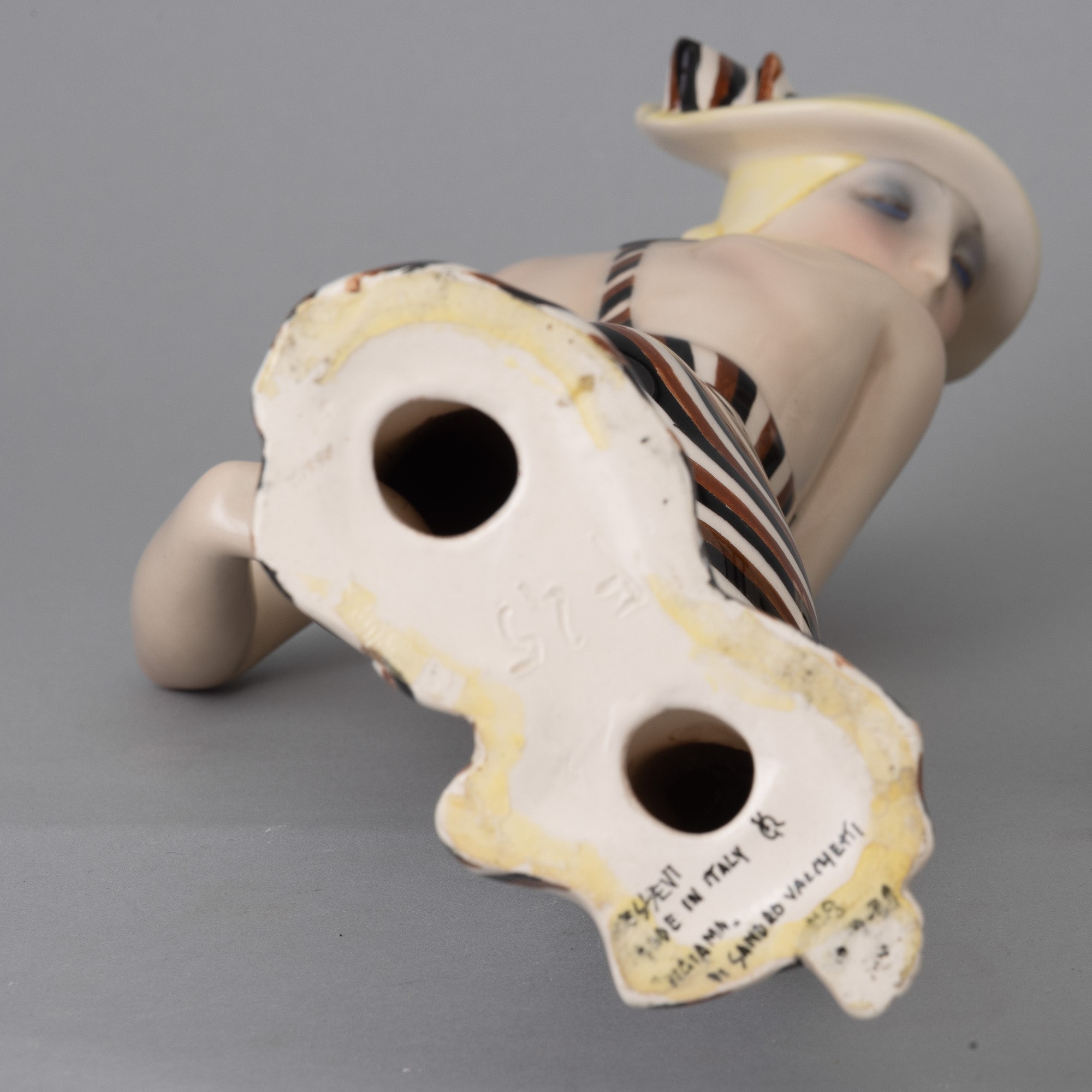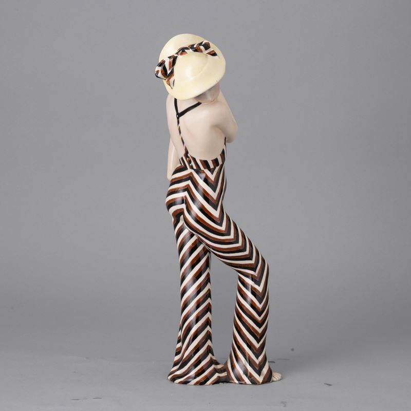 Earthenware figure of woman with cut-out dress with polychrome decoration.