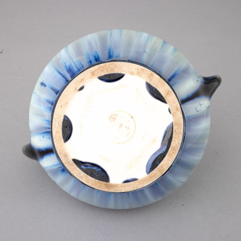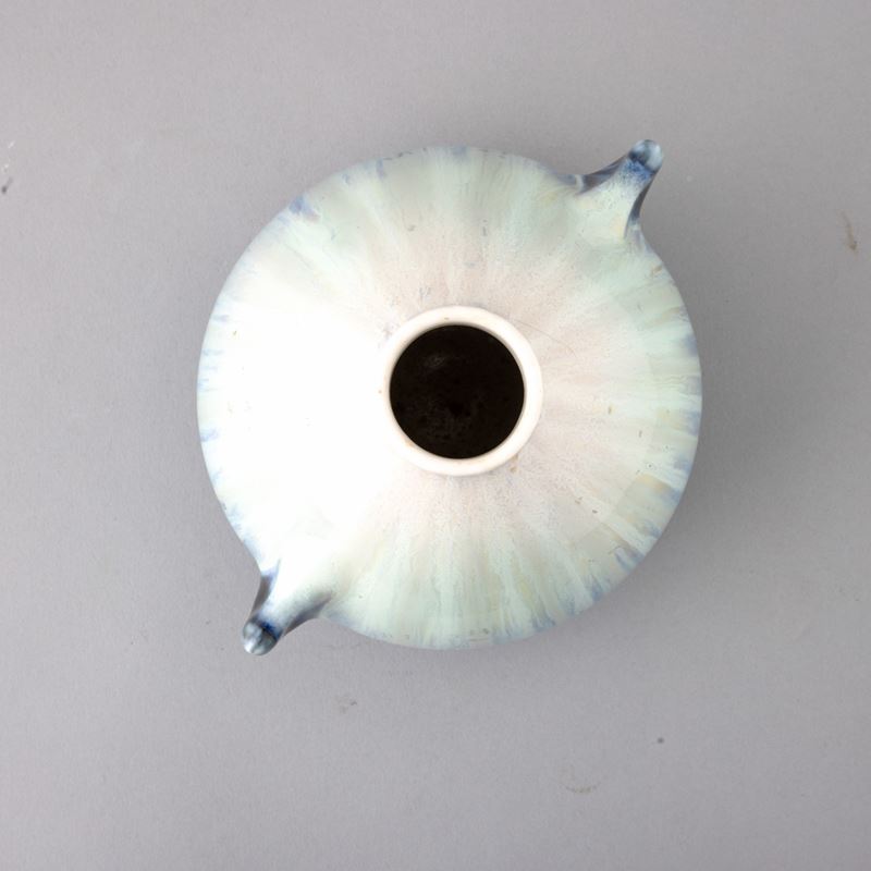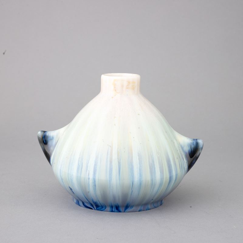 Bulb vase with two lugs and small neck in earthenware enamel polychrome cast.