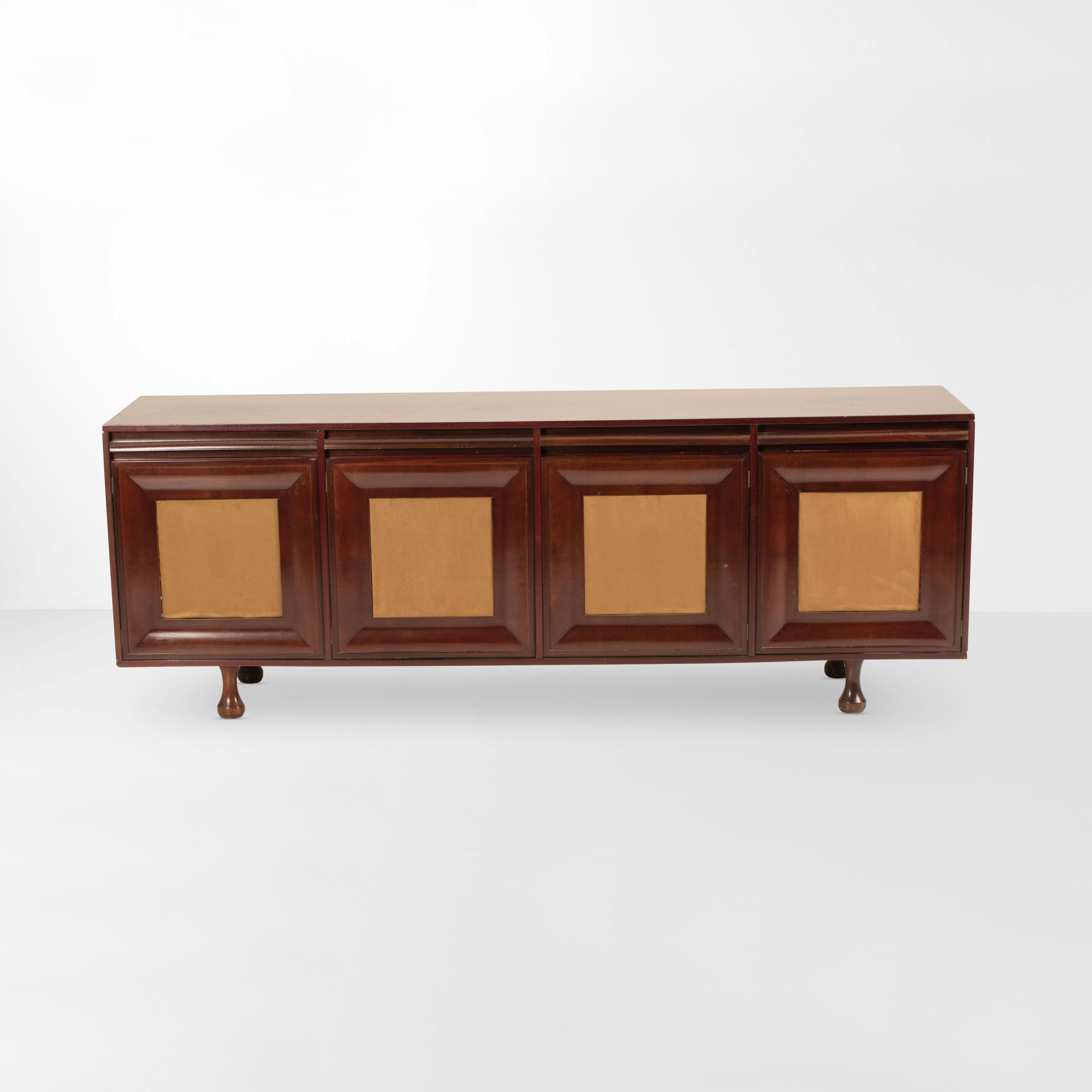 Struttura, cassetti e sostegni in legno. Ante con rivestimenti in panno.