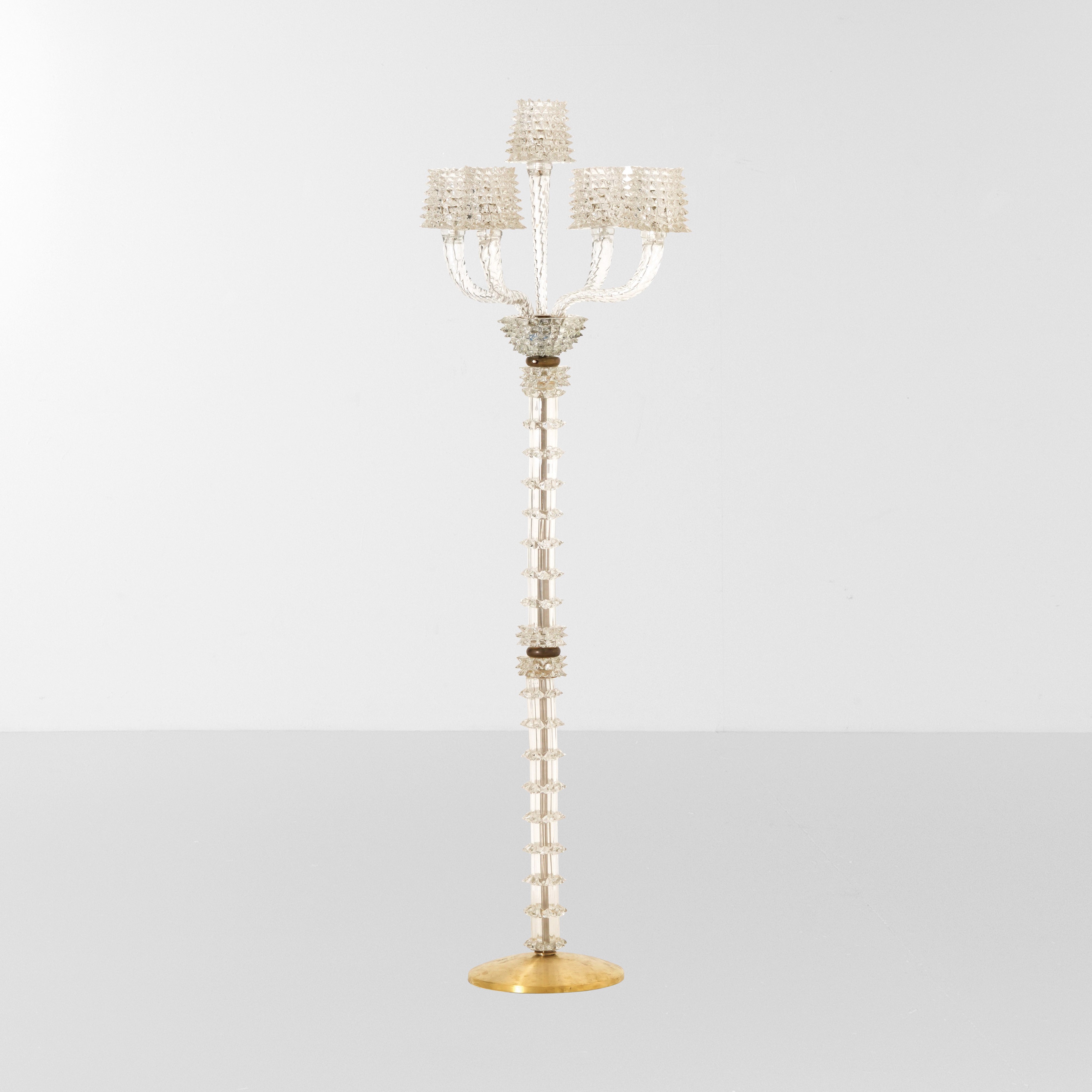 Struttura in vetro di murano rostrato con anima in metallo. Base in ottone. Diffusori in vetro di Murano rostrato.