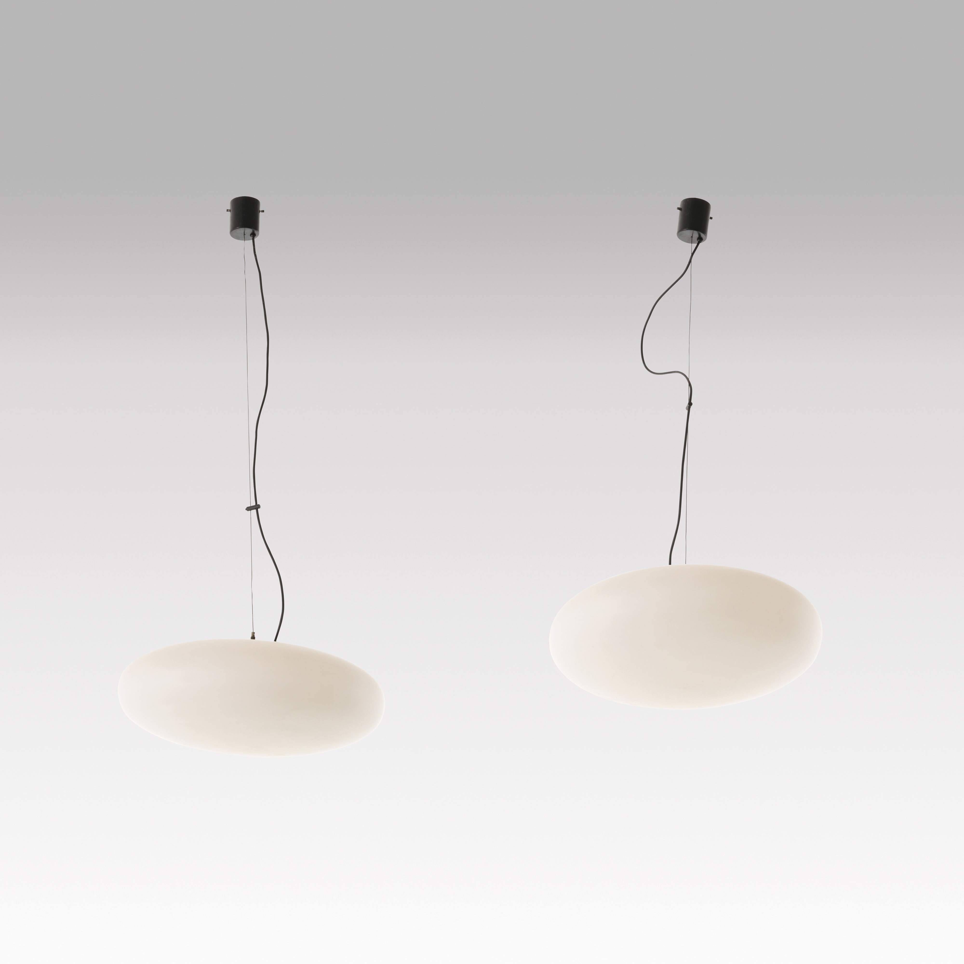 Struttura in metallo laccato e diffusore in vetro opalino.