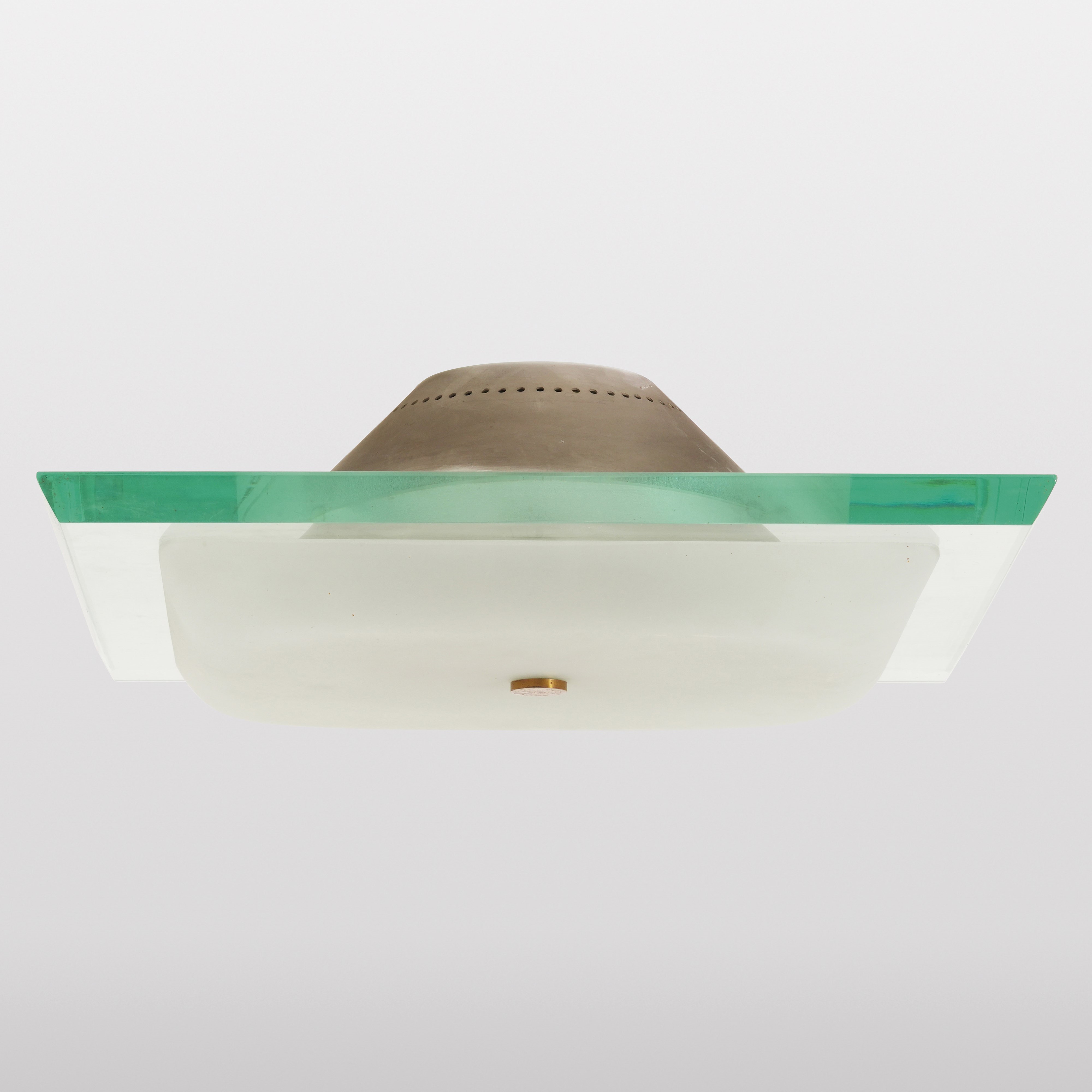 Diffusore in cristallo molato di forte spessore e schermo in cristallo curvato satinato.