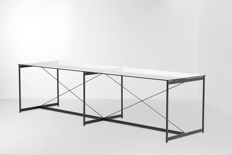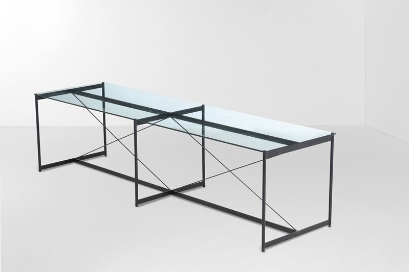 Struttura in ferro con piano in cristallo molato di forte spessore.