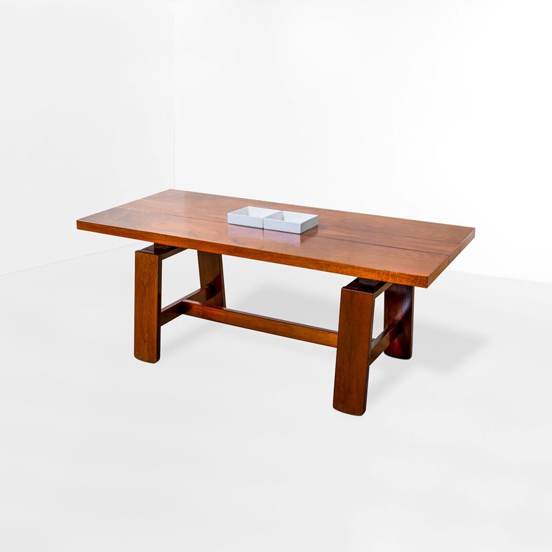 Struttura e piano in legno con elementi contenitori in ceramica smaltata.