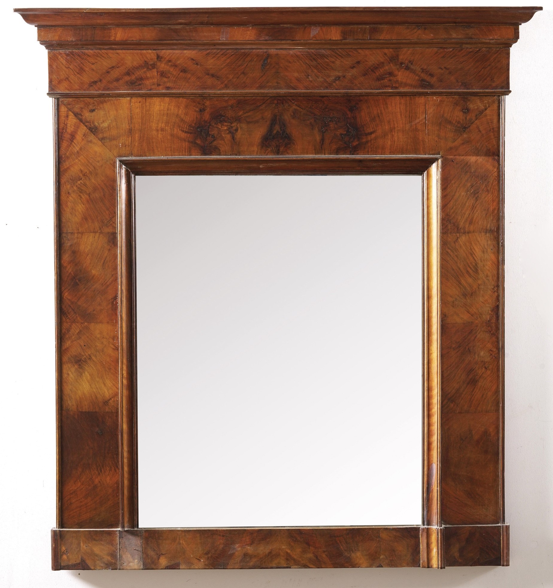 Caminiera Impero lastronata in piuma di mogano. XIX secolo