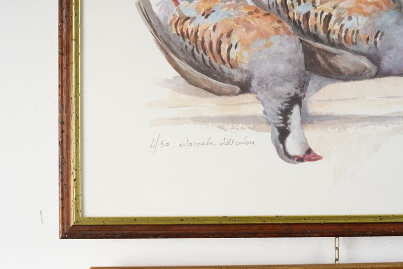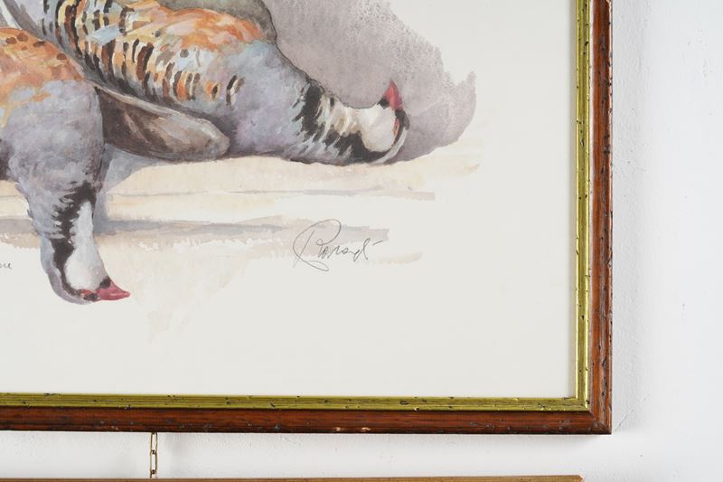 Cinque stampe e acquerelli con soggetti di caccia, XX secolo