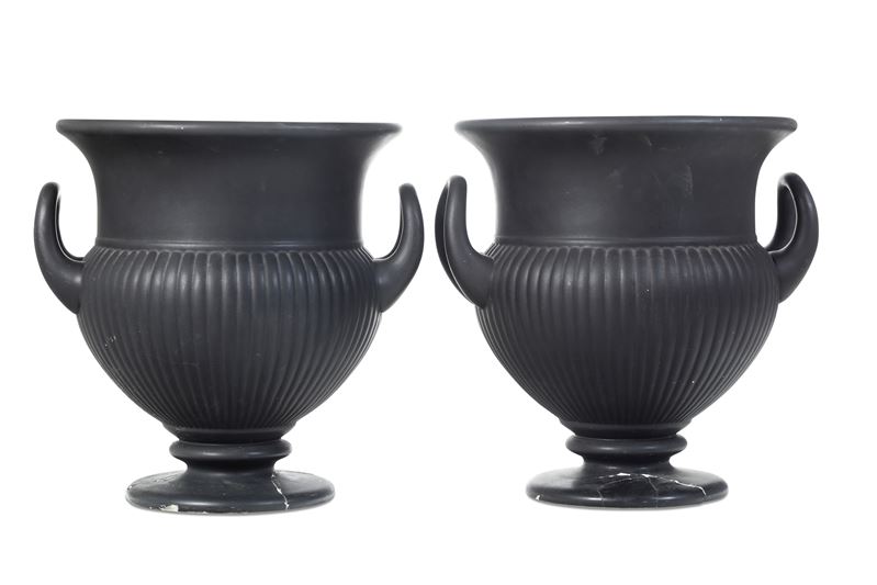 Coppia di vasi a cratere in ceramica. Manifattura Este, XX secolo