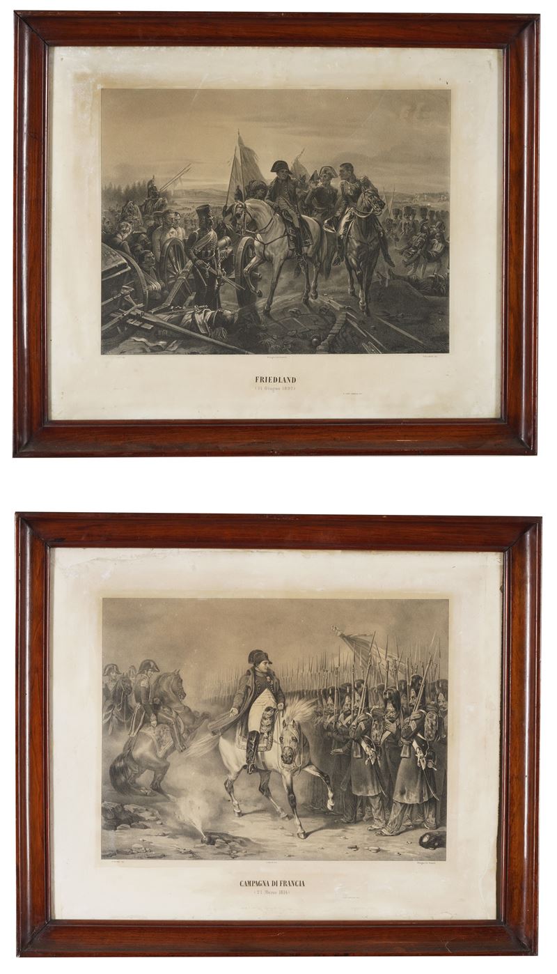 Due incisioni napoleoniche in cornici. XIX secolo