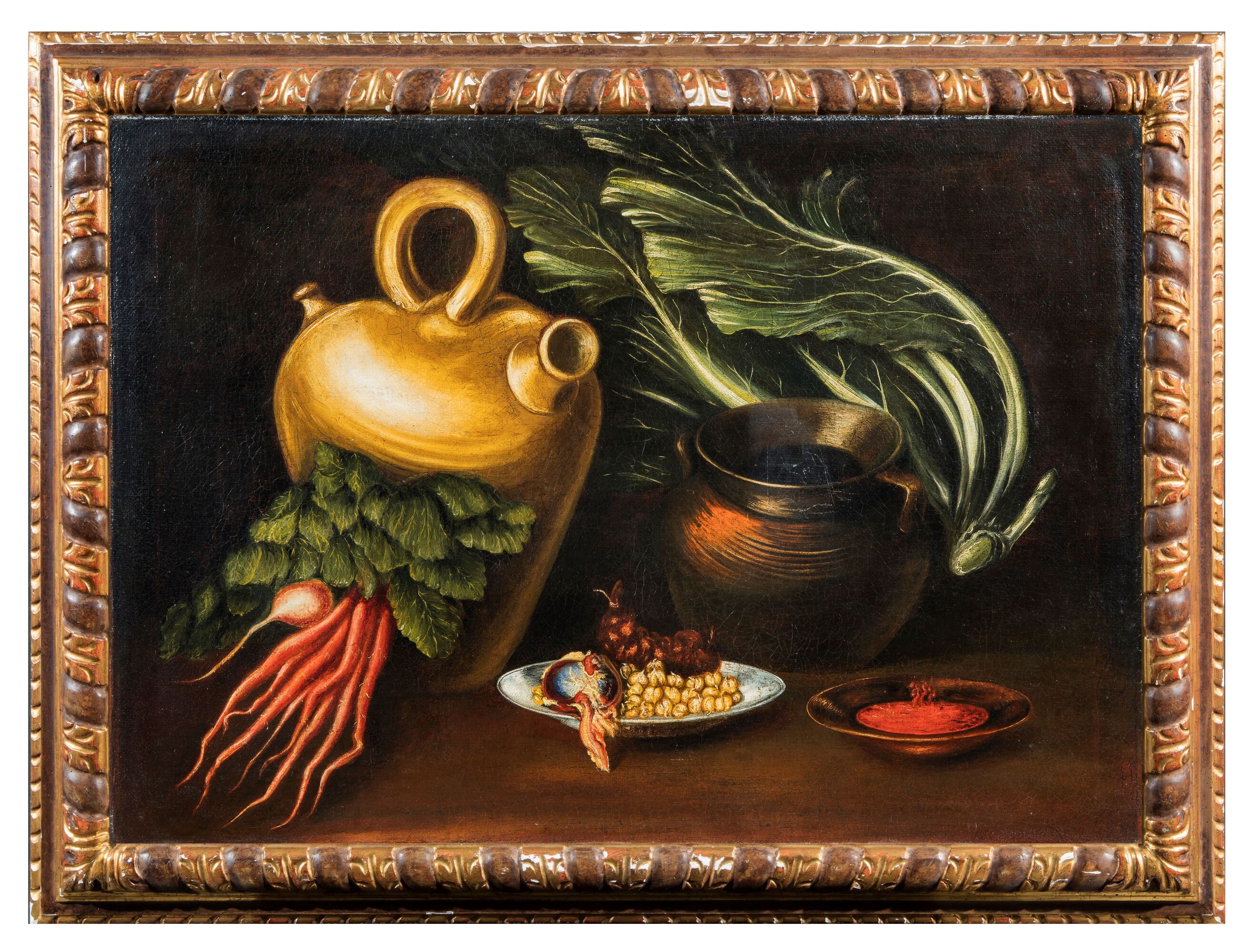 Pittore del XVIII/XIX secolo Natura morta con ceci e ortaggi; Natura morta con uova e ortaggi